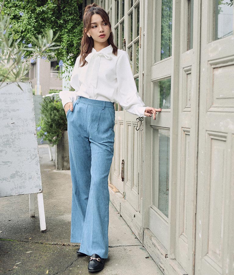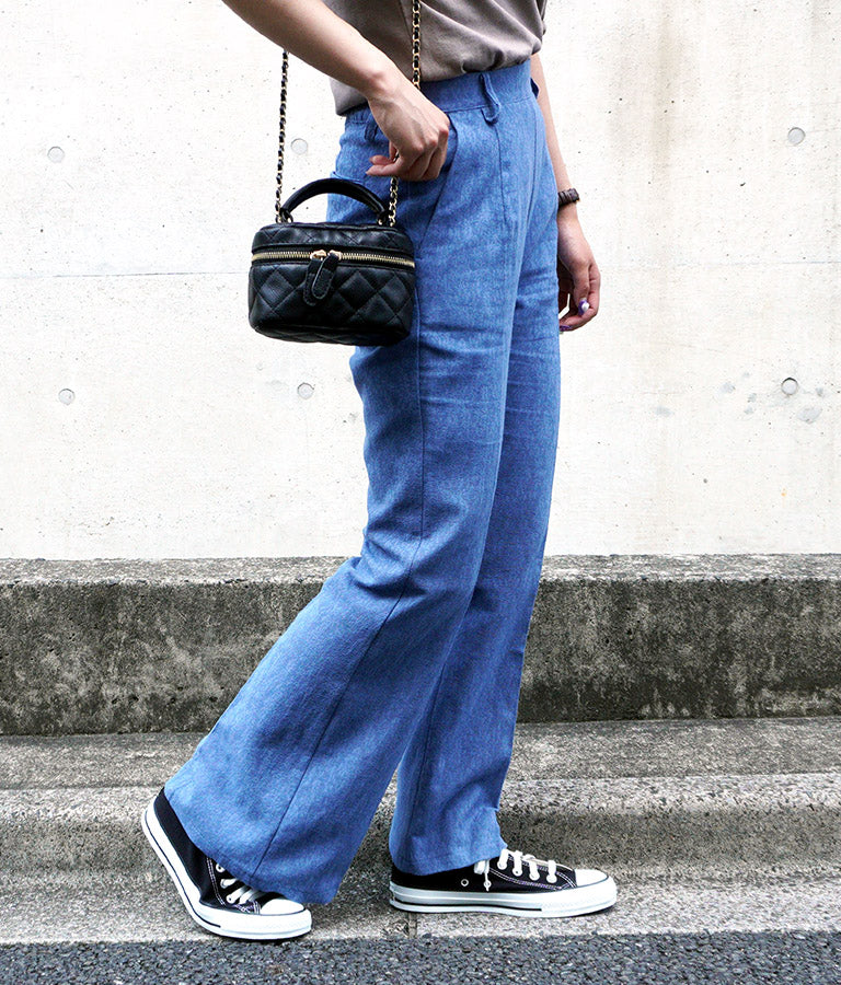 シルエットにメリハリが生まれ、動くたびに揺らめくフレア裾で女性らしさを演出します。