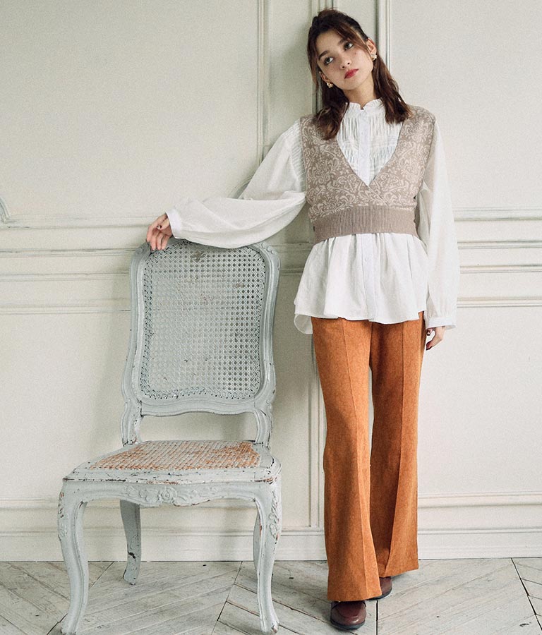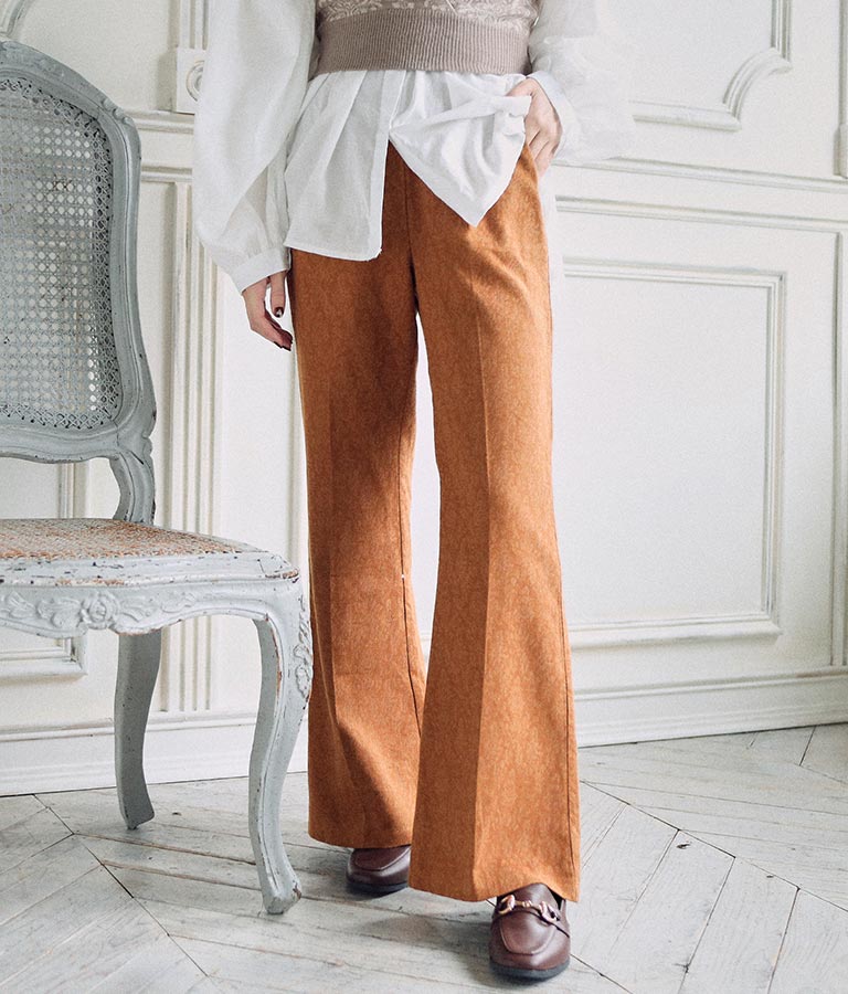 ダマスク柄 ジャガード フレア パンツ 522-6103
