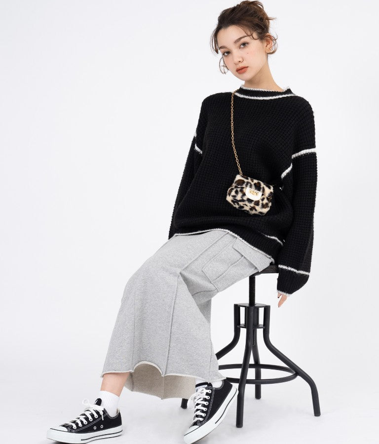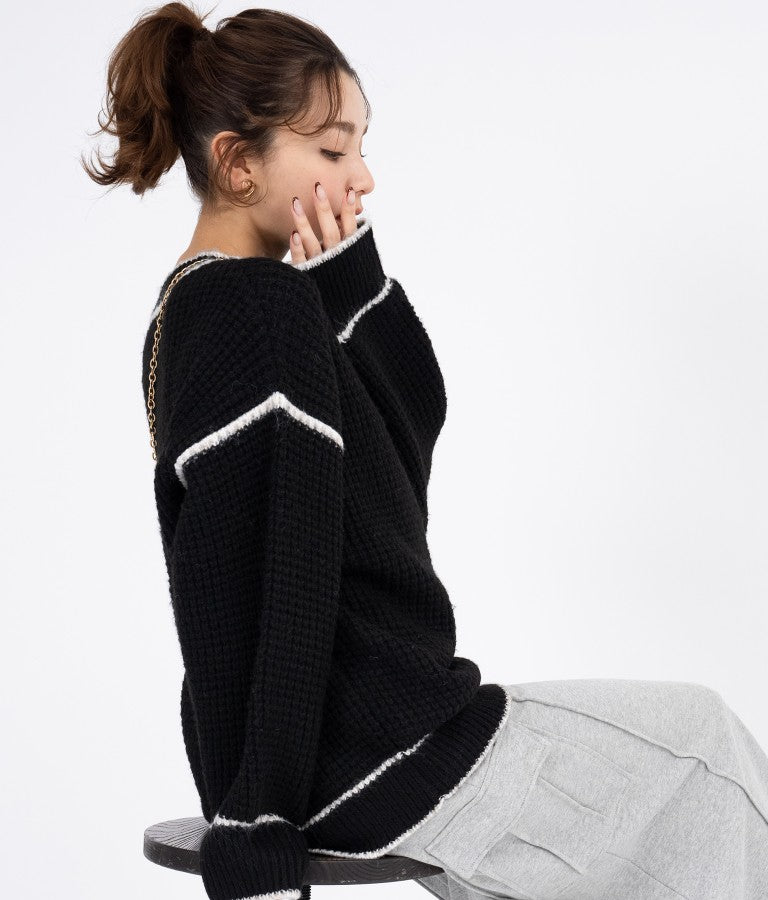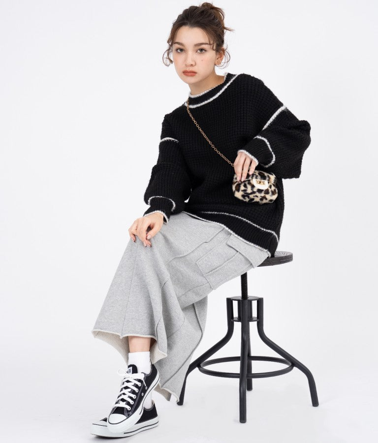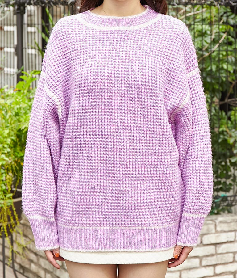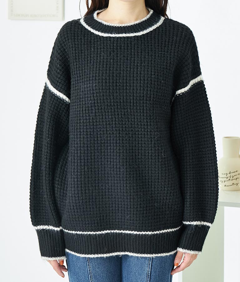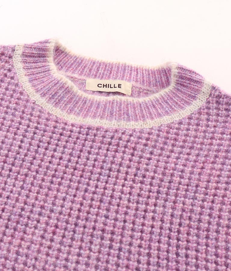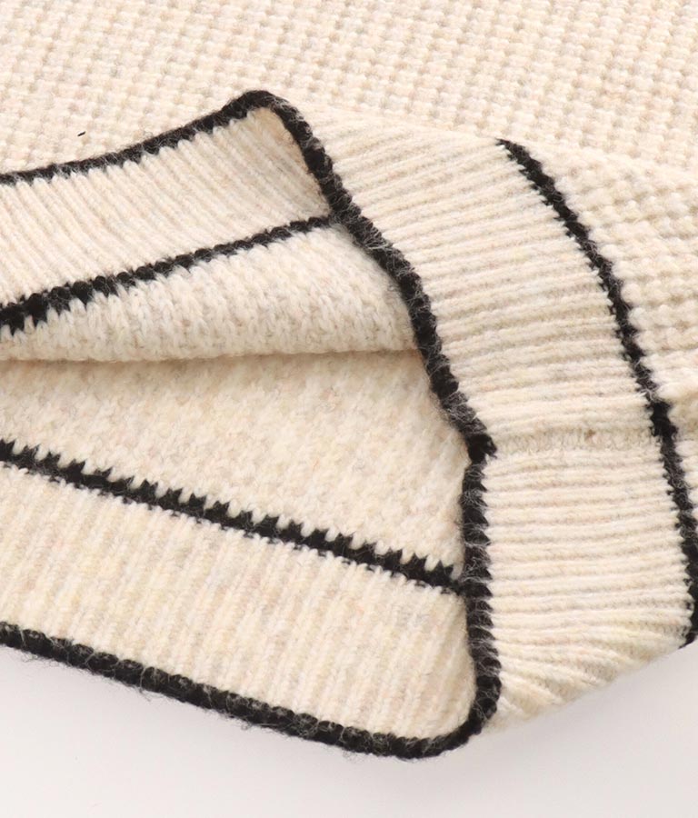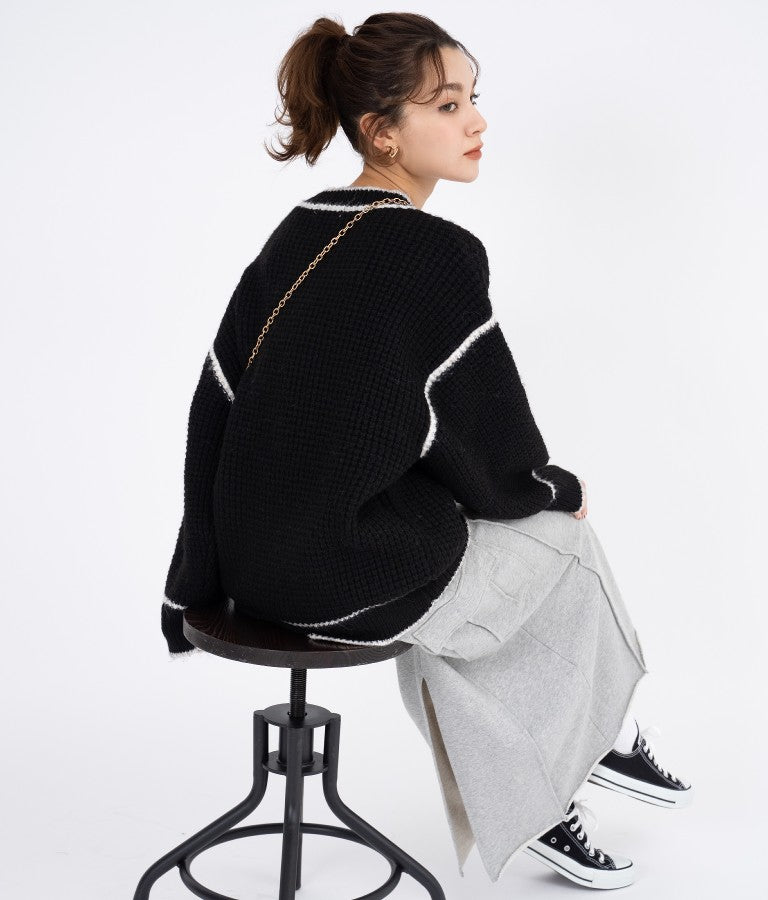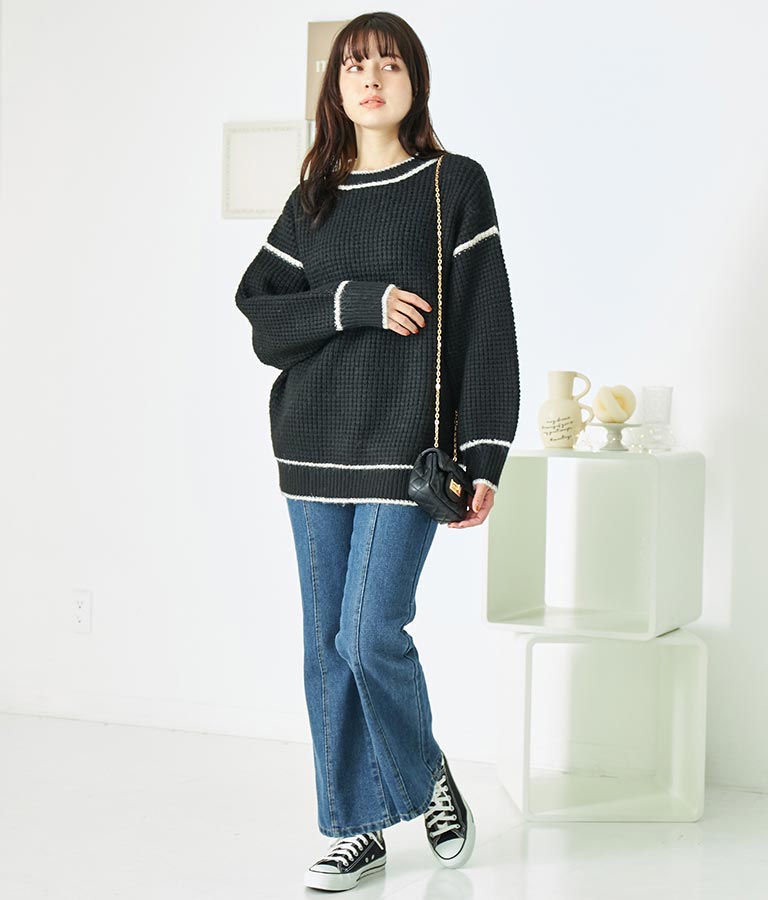 手編み風のざっくりとした編地が抜け感を演出するニットトップス。