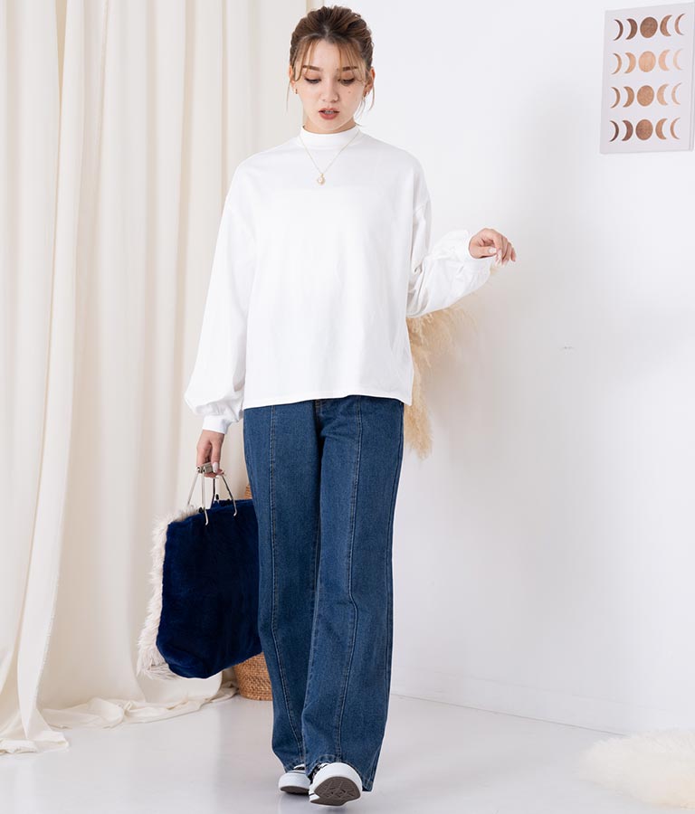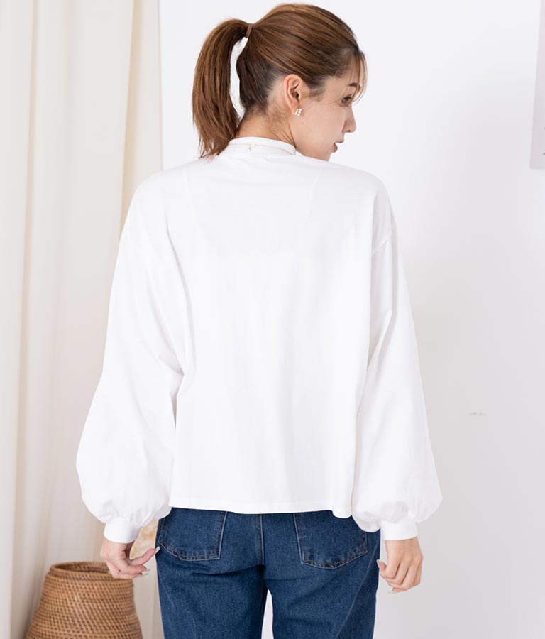ボリュームスリーブが女性らしいシルエットを演出する1枚。