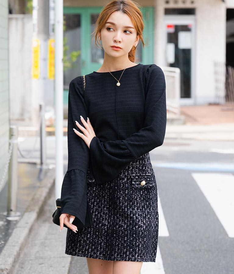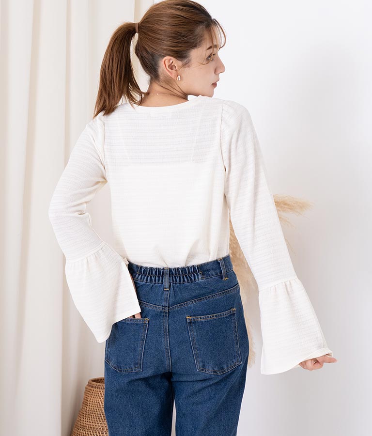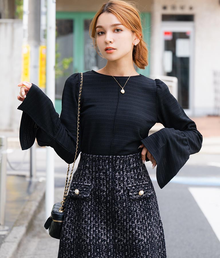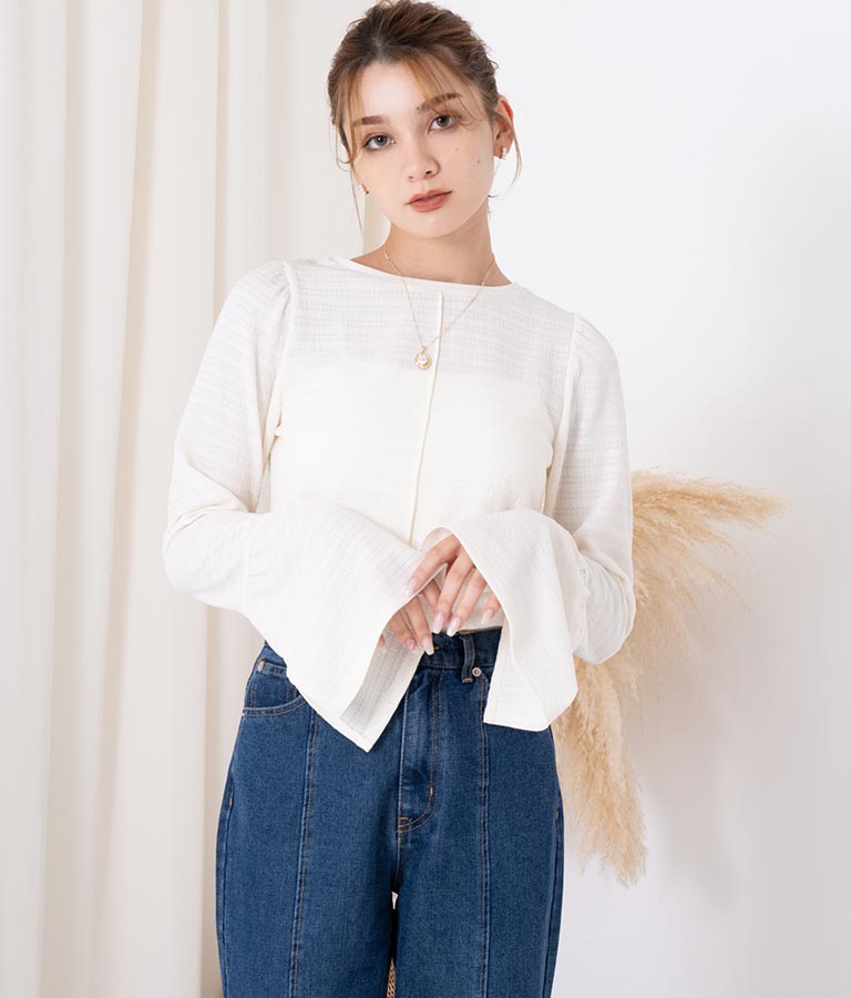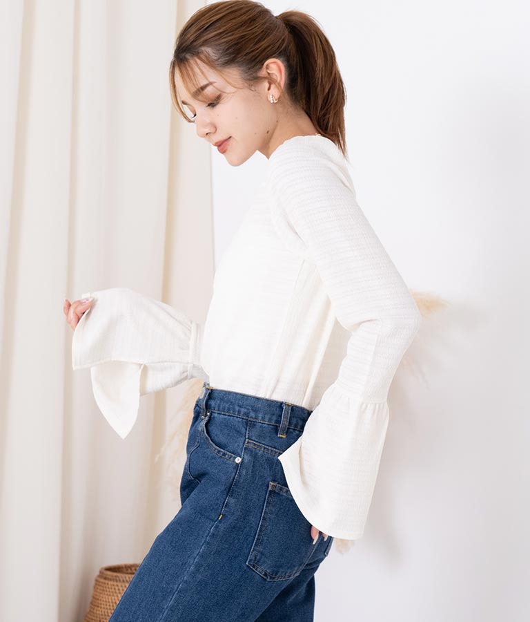 袖口にかけて広がるベルスリーブデザインが特徴のプルオーバー。