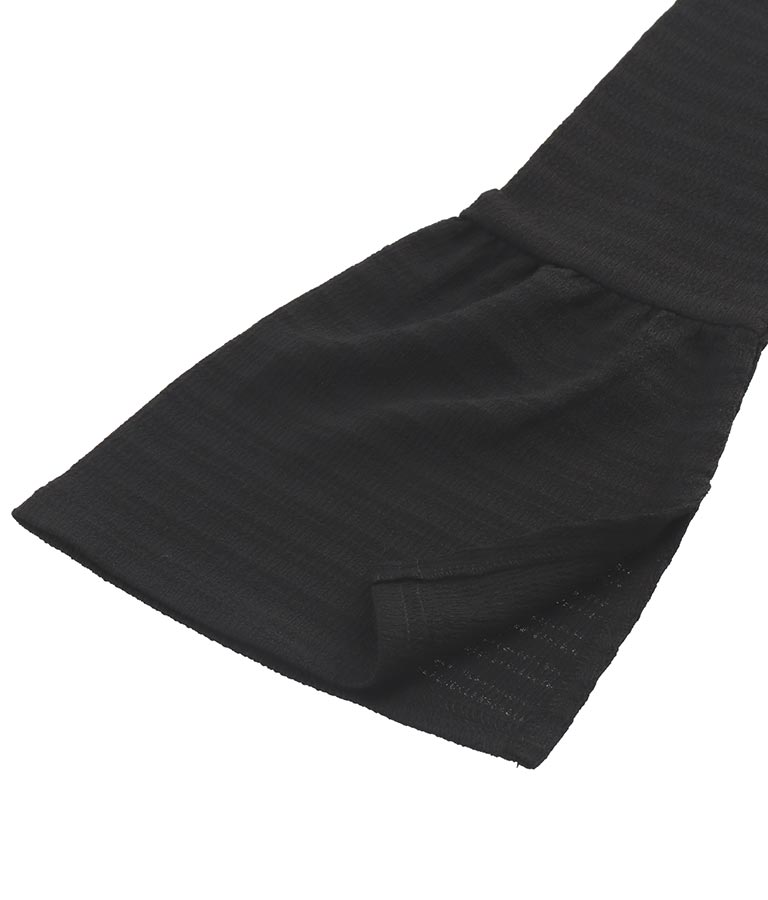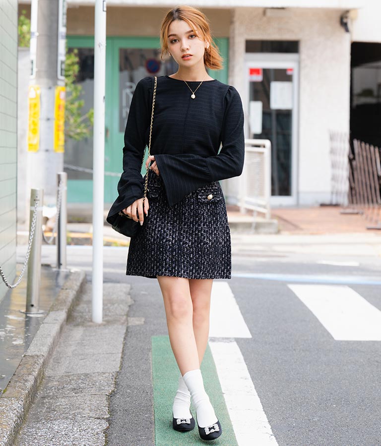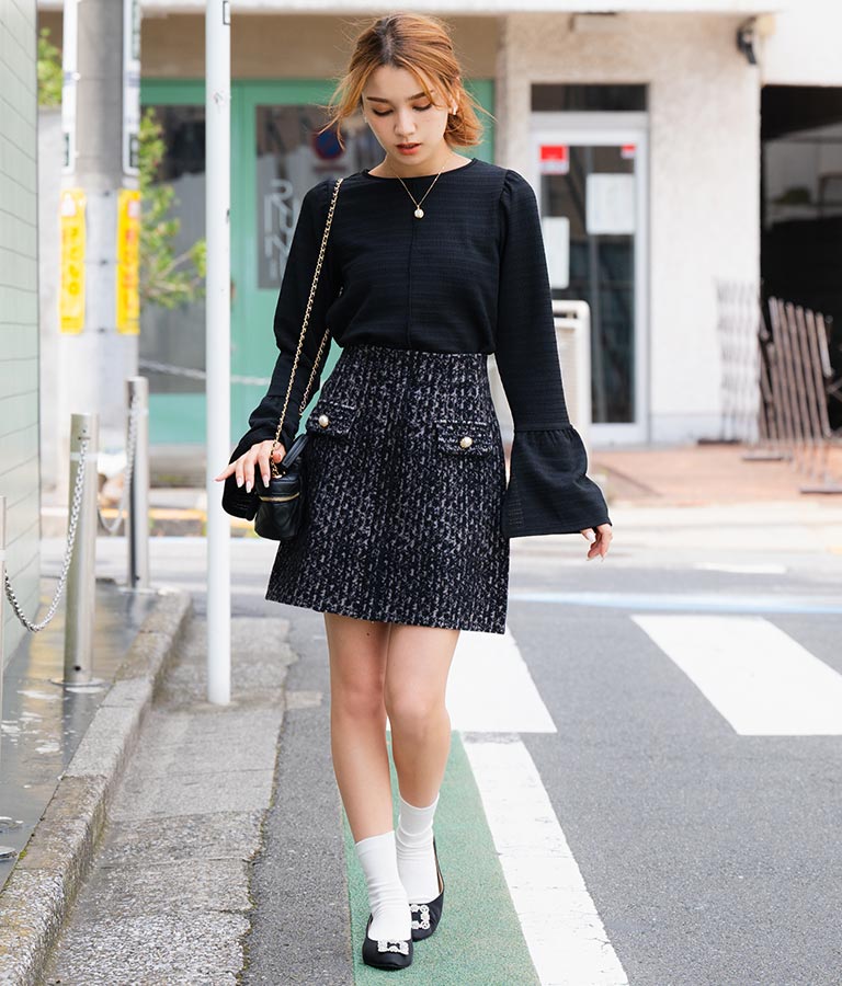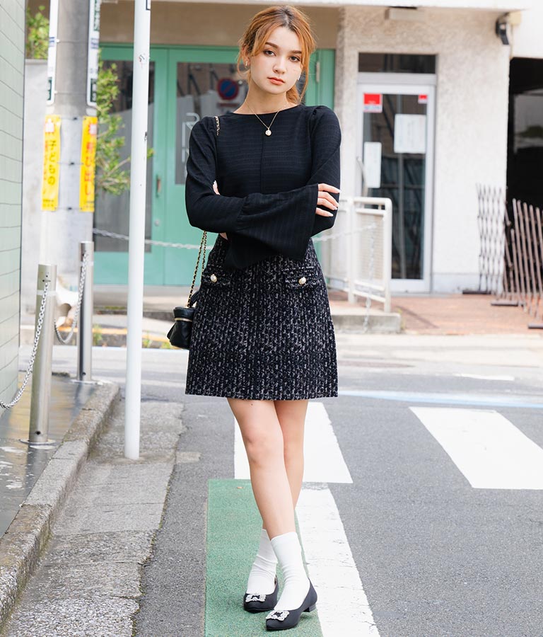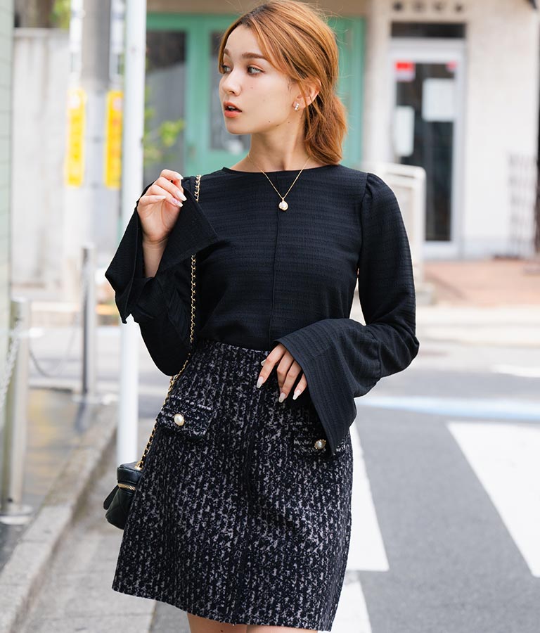 ふんわりとしたベルスリーブが華やかさを添え、シンプルながらも上品な印象を与えます。
