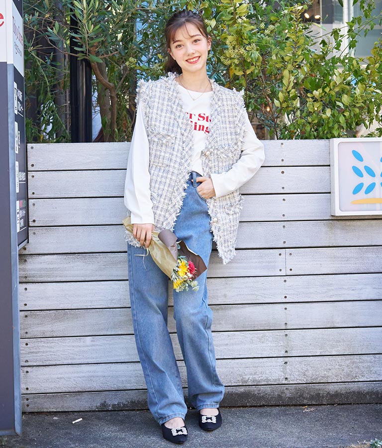 定番のデニムパンツはもちろんのこと、フレアスカートやタイトスカート、ショートパンツなど幅広いボトムと合わせやすく、柄物との相性も抜群です。