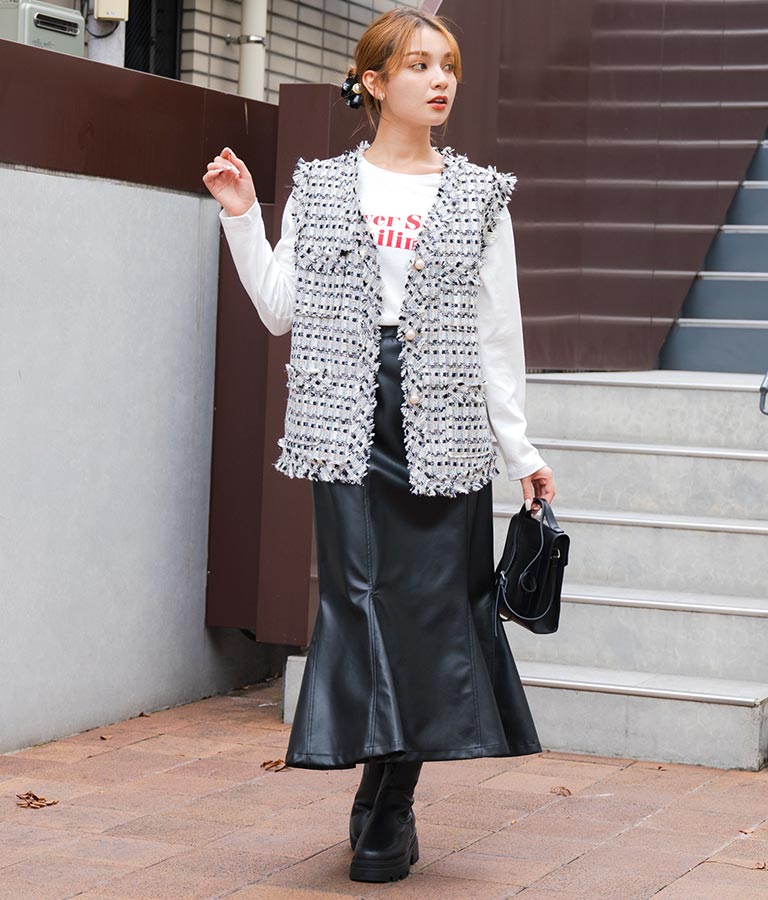 カラーによってプリントの色が違うので、スタイリングのポイントに!