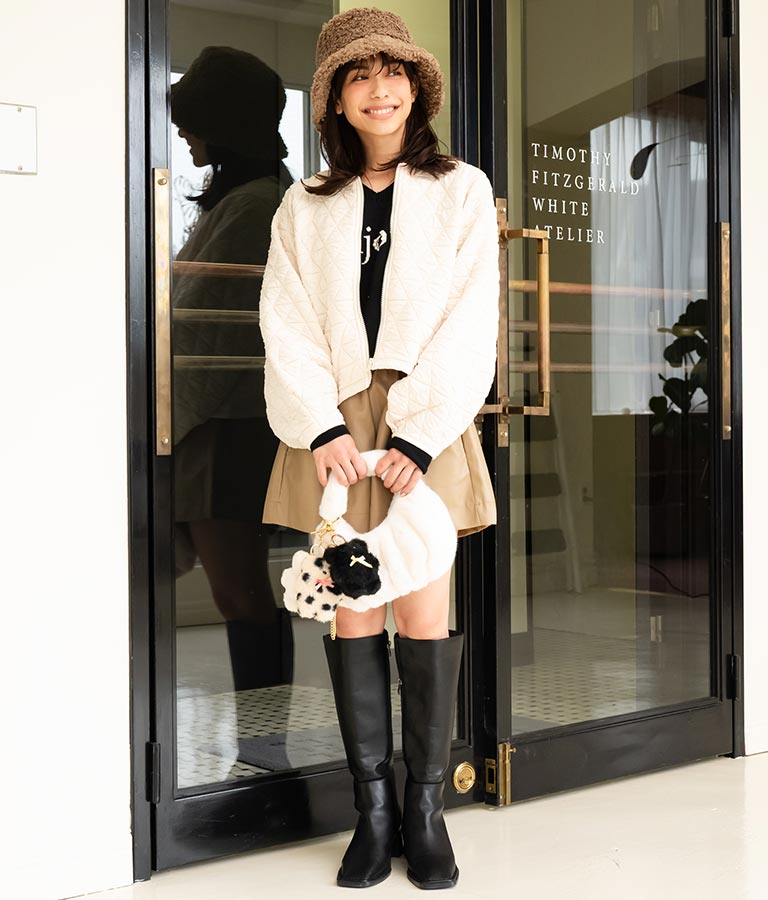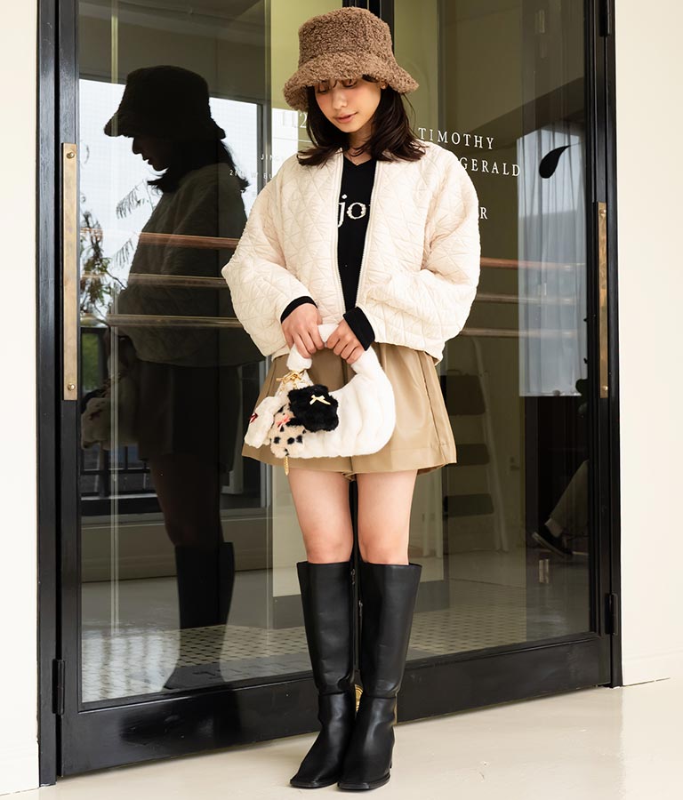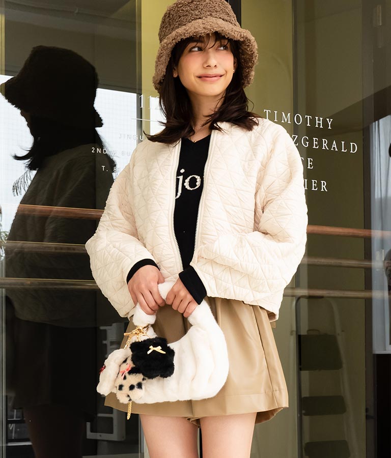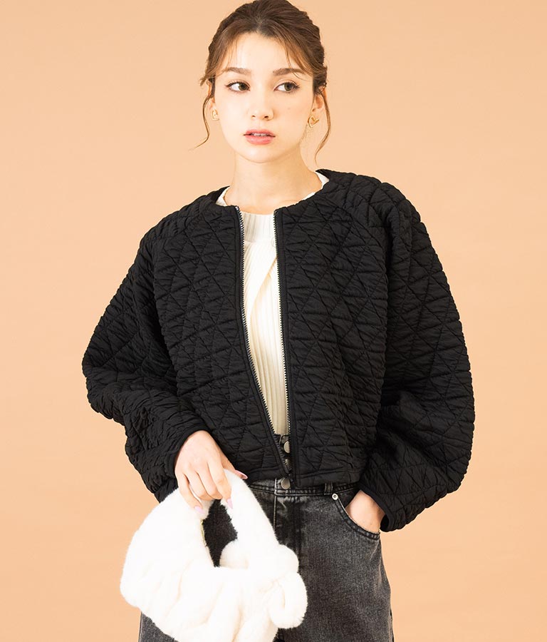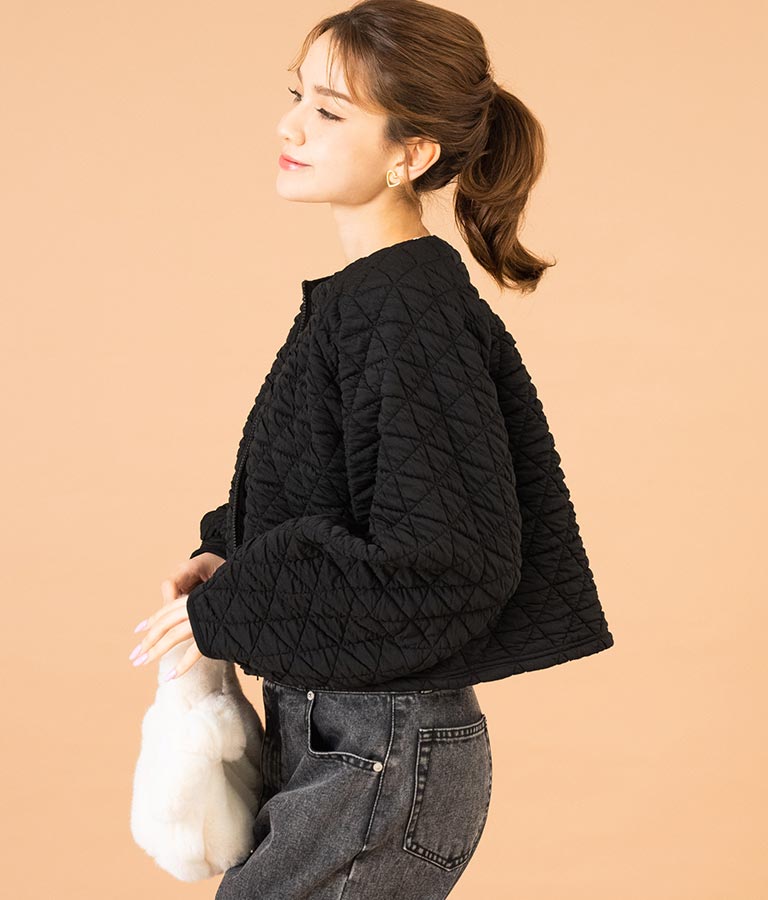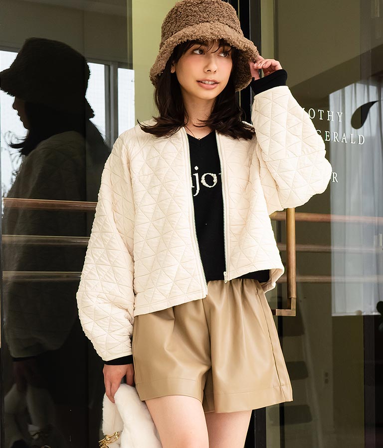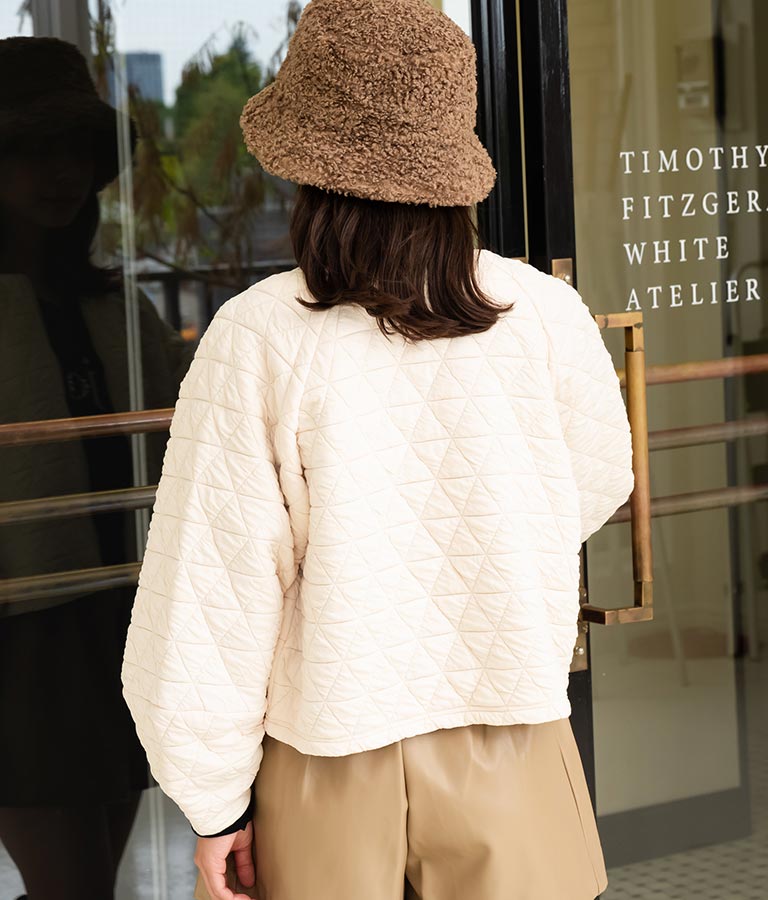 短めの丈感なのでボトムとのバランスも取りやすく、キルティングが程よく上品な雰囲気に。