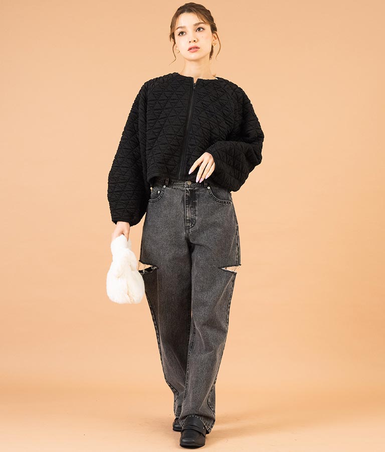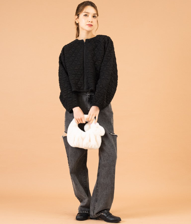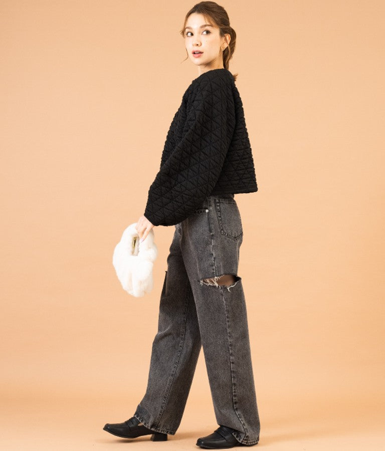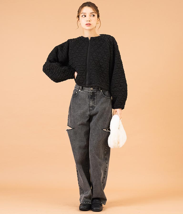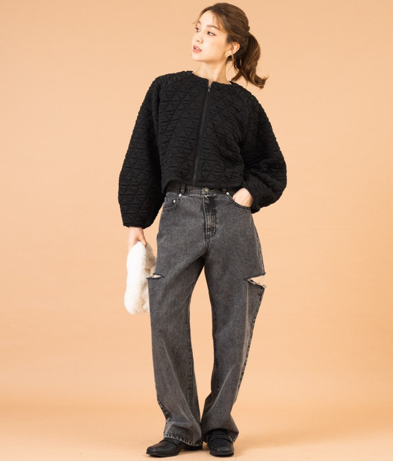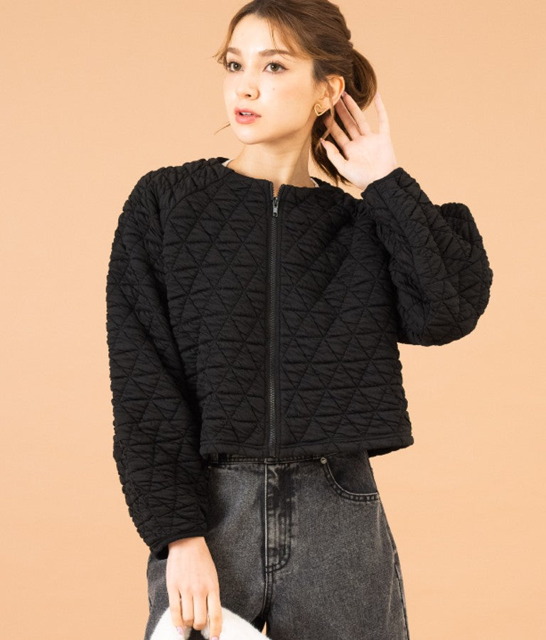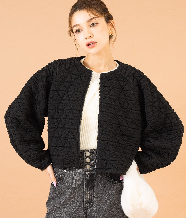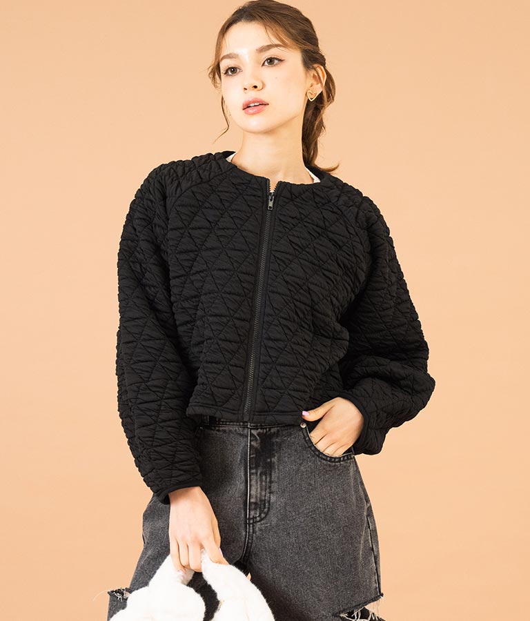 短めの丈感なのでボトムとのバランスも取りやすく、キルティングが程よく上品な雰囲気に。