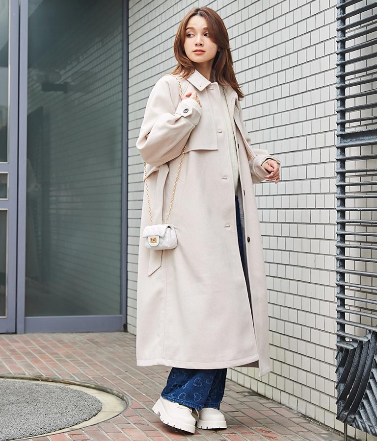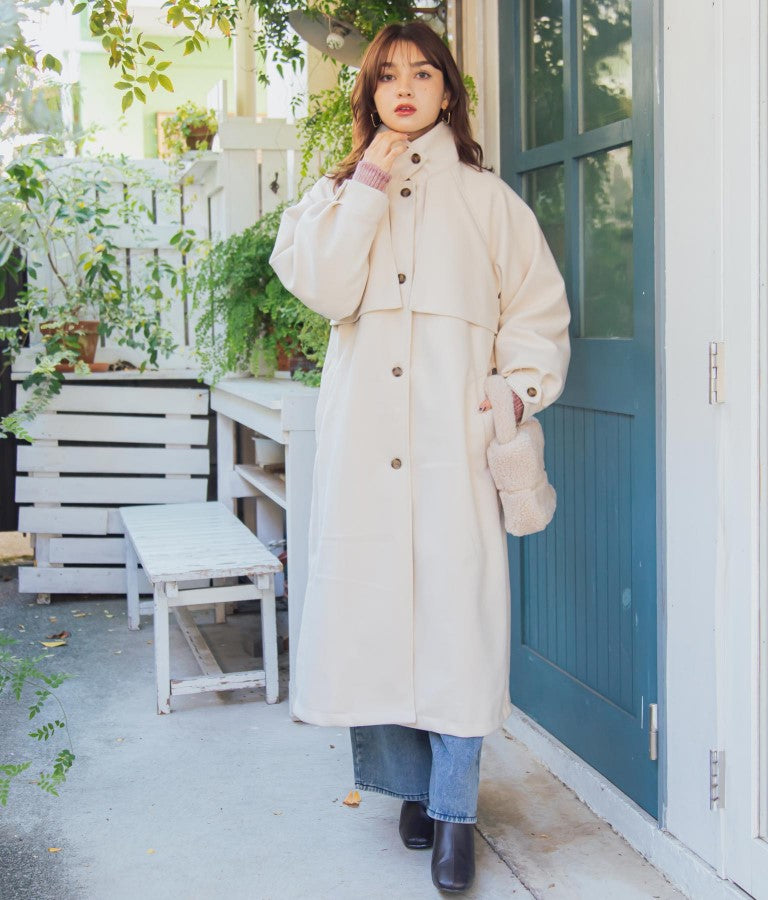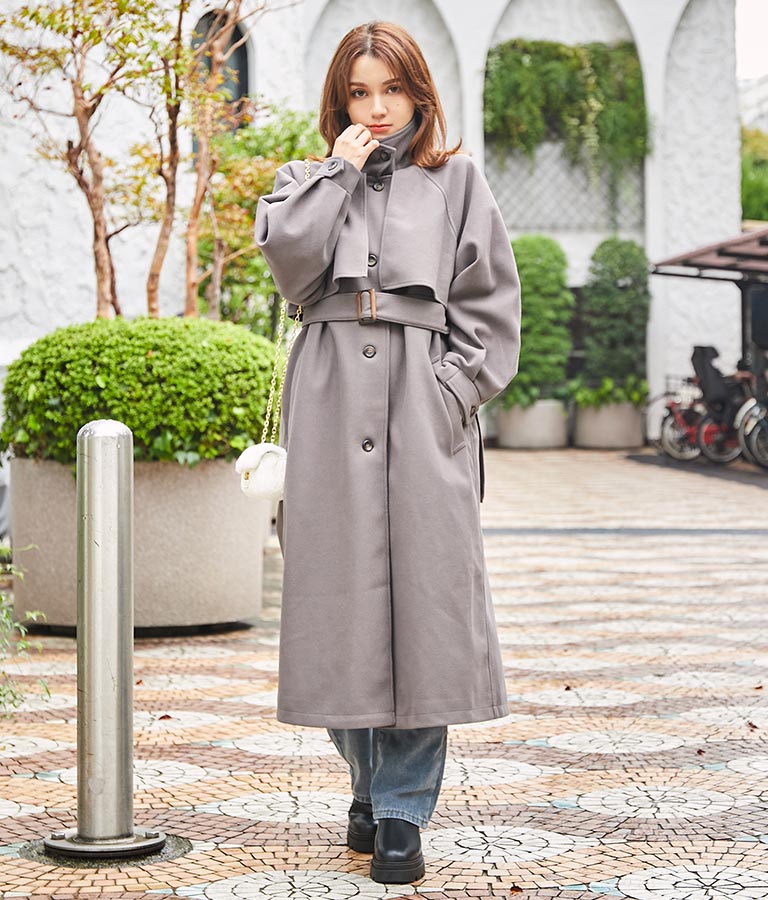 スタンドネックとステンカラーの2つの装いが出来るアレンジコート。