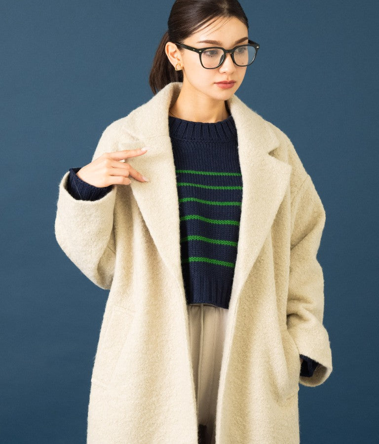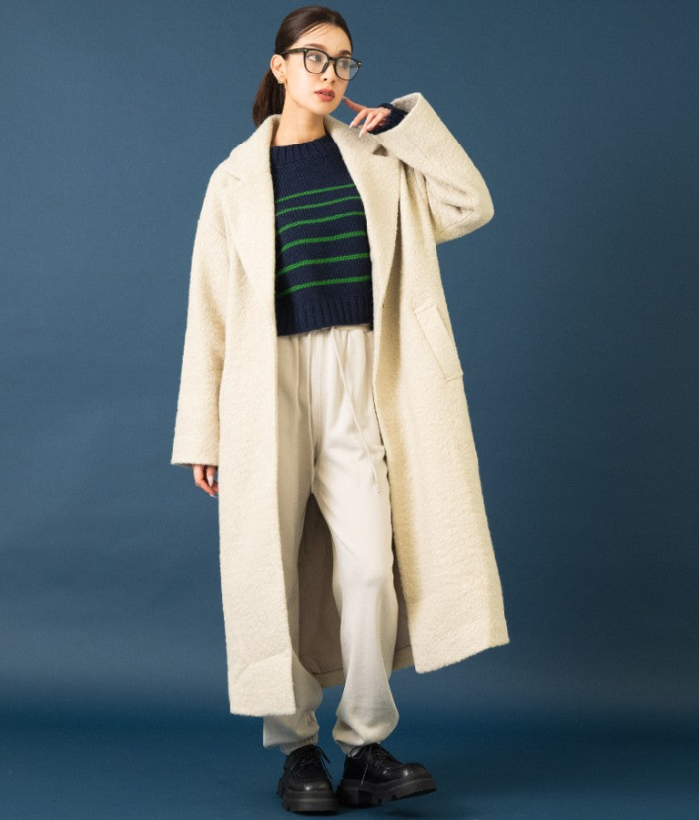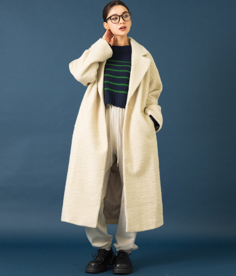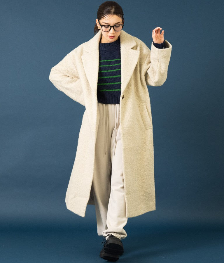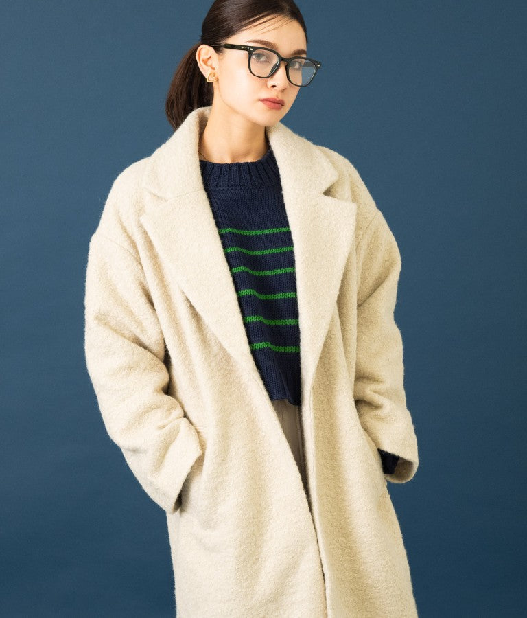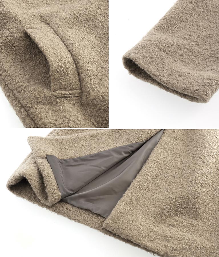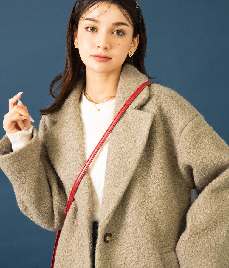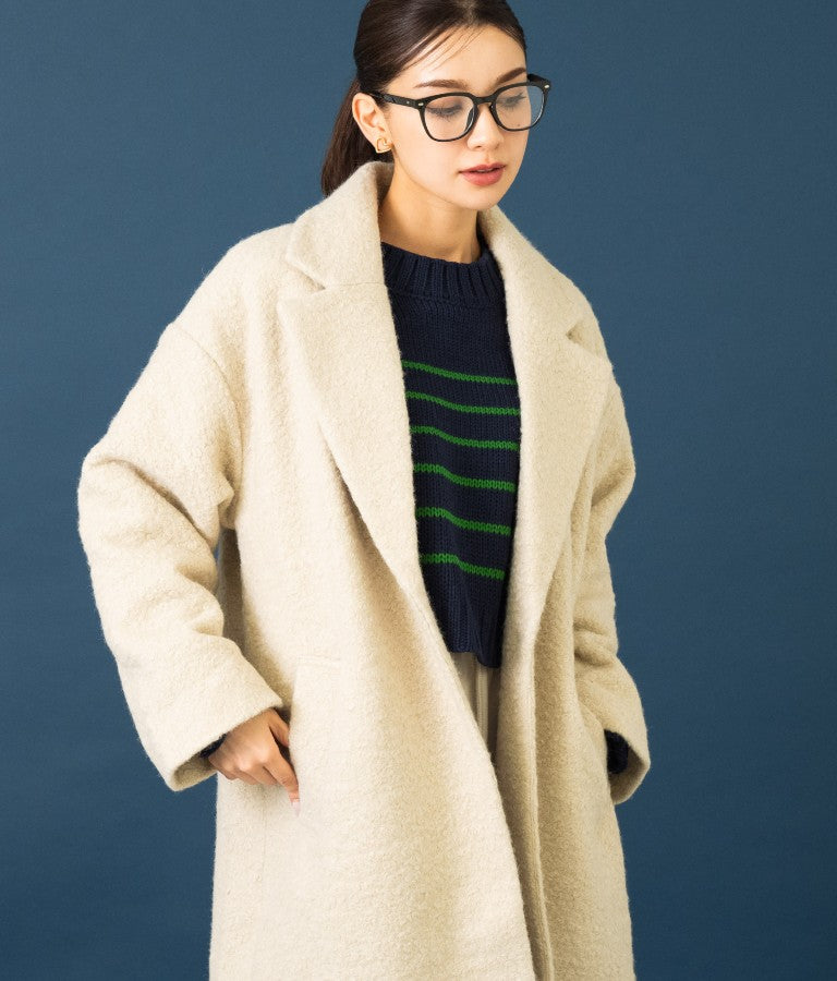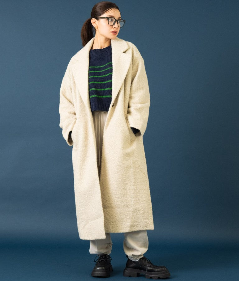 リングボアのふっくらしたシルエットがかわいいテーラードロングコート。