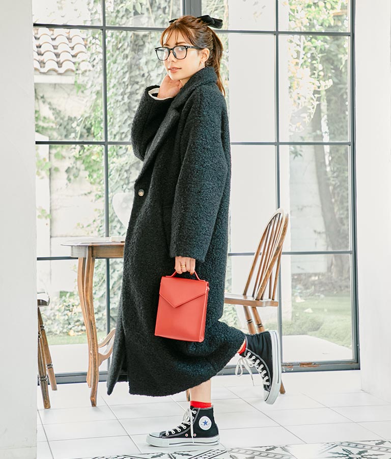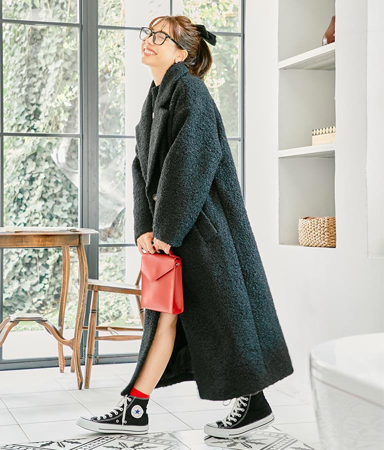程よくボリューム感のあるコートなので、中に厚手のニットなどを着込んでいただくのもおすすめ。