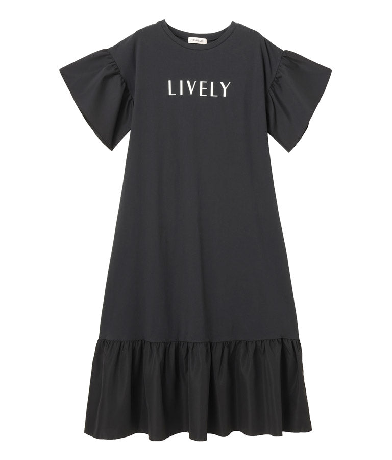 フリルのようなフレアシルエットが大人可愛いポイントに。