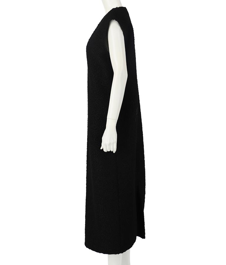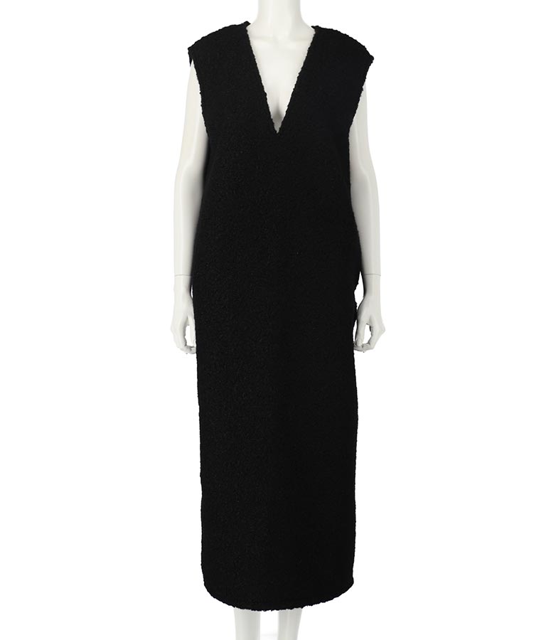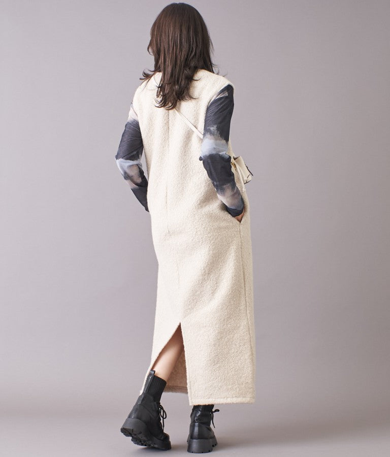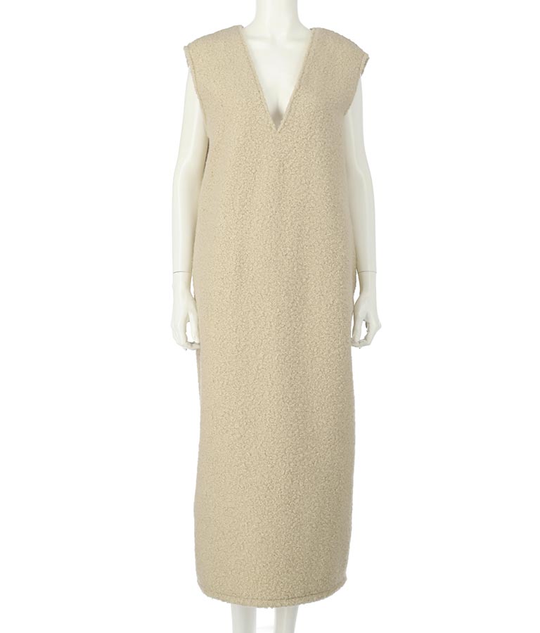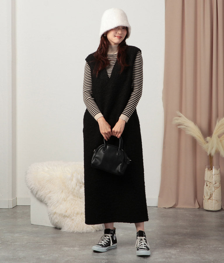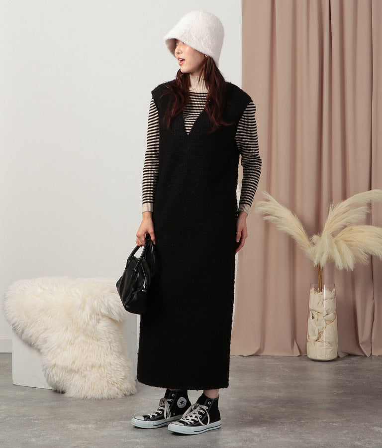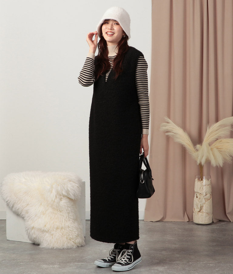 もこもこのリングボアが暖かくかわいらしい雰囲気のジャンパーワンピース。