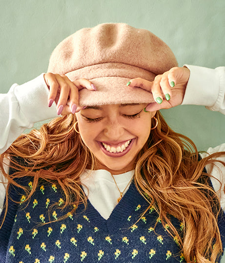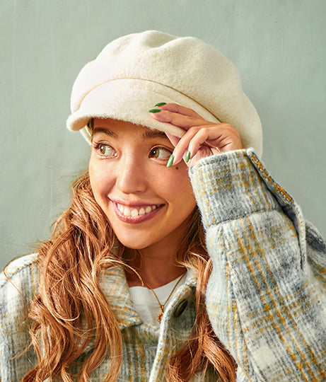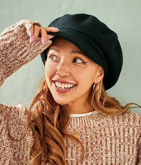 暖かみのあるウール素材のキャスケット。