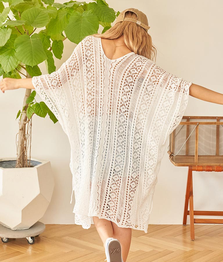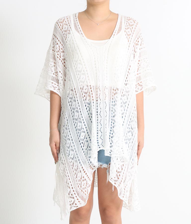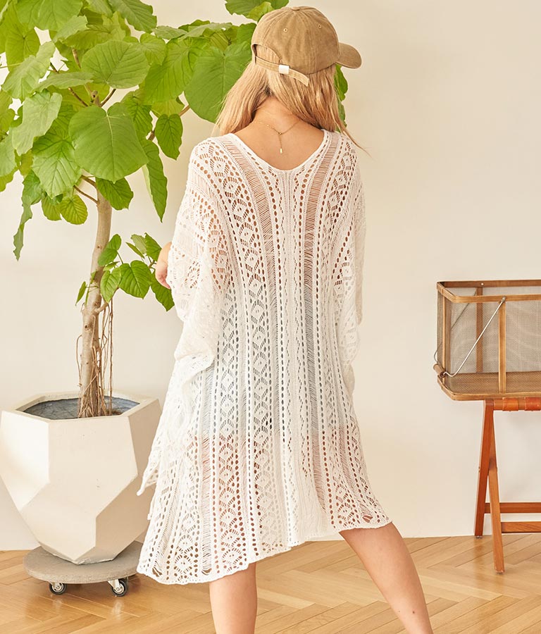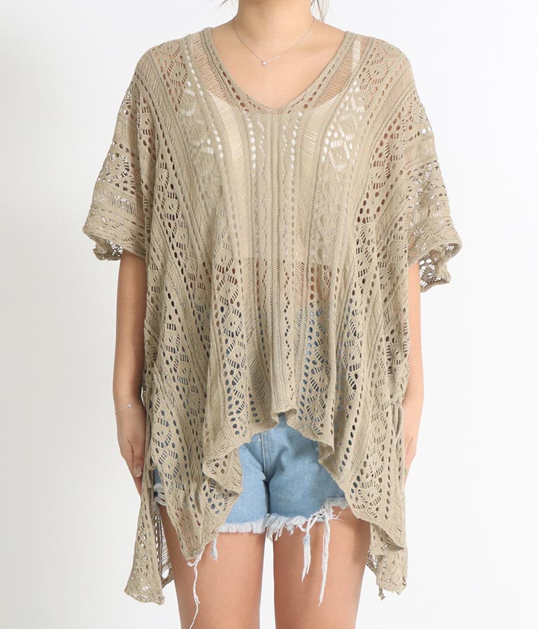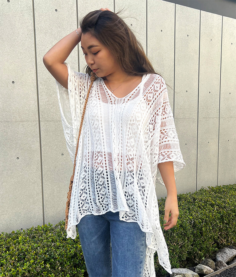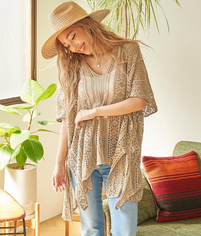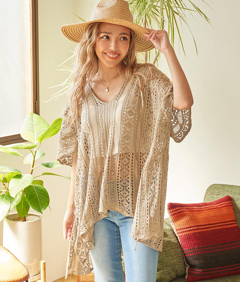 クロシェ編み Vネック ポンチョ チュニック 813-6832