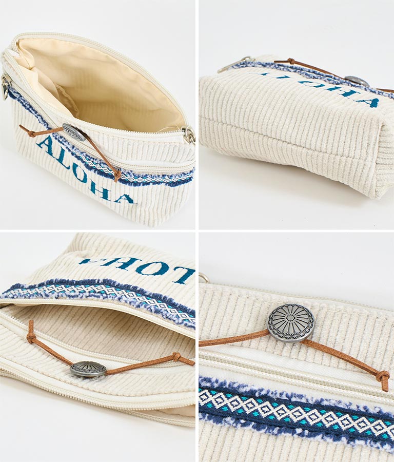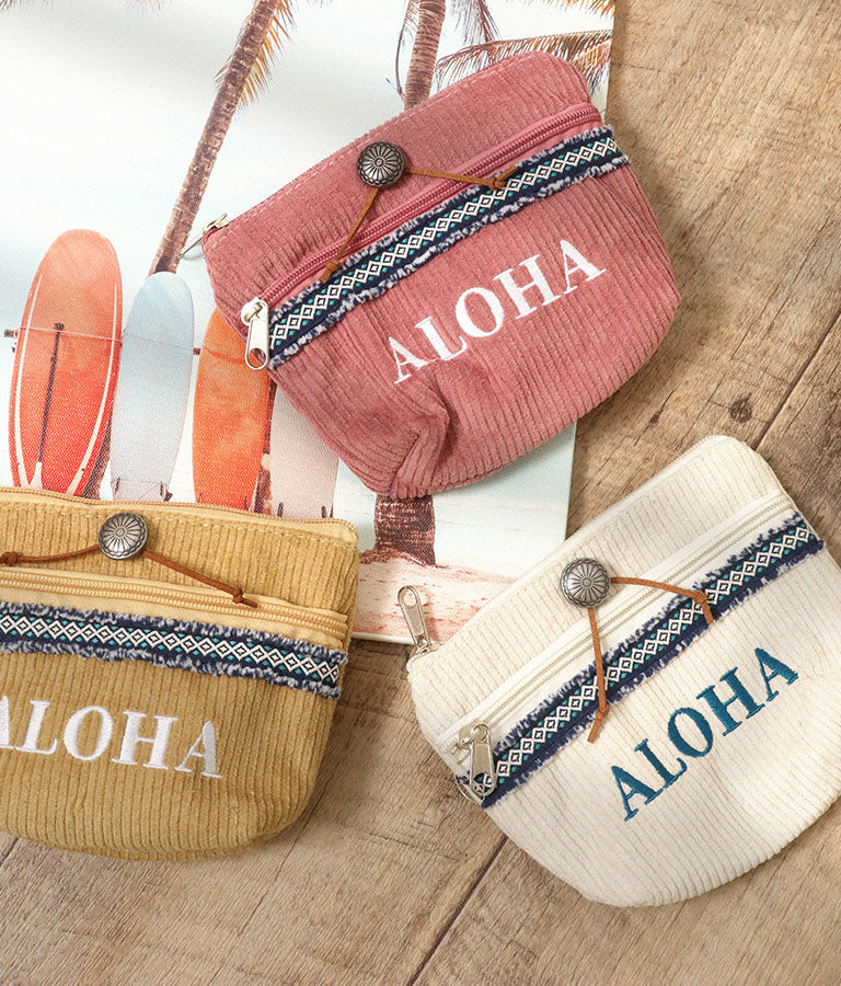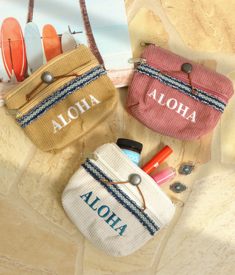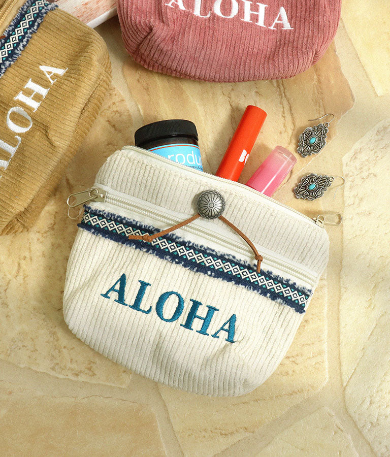 ALOHA刺繍 コンチョ付き コーデュロイ ミニ ポーチ 859-5922