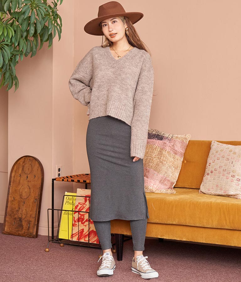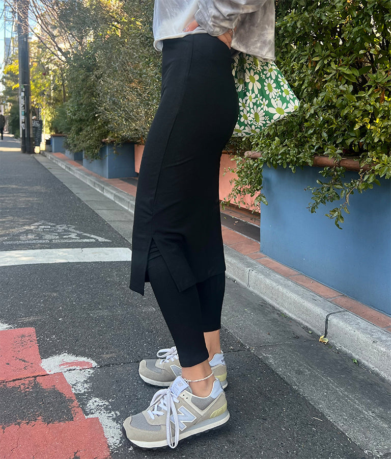 ラフな着用感とおしゃれなレイヤードスタイルが叶うスカート付レギンス。