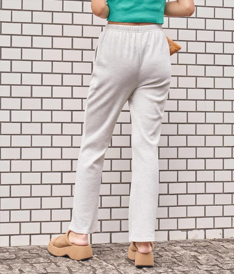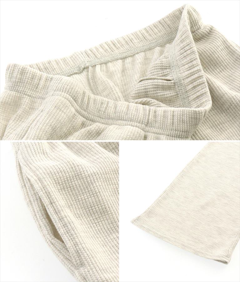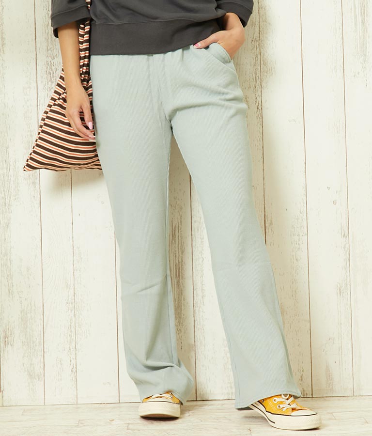ウエストギャザーワッフルフレアパンツ【セットアップ着用可】 -