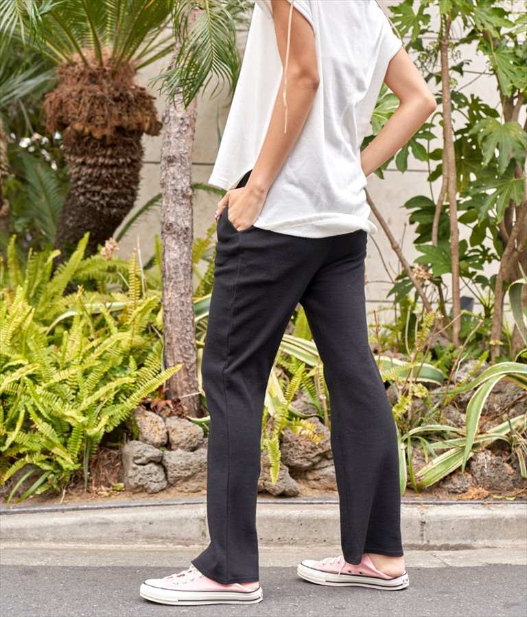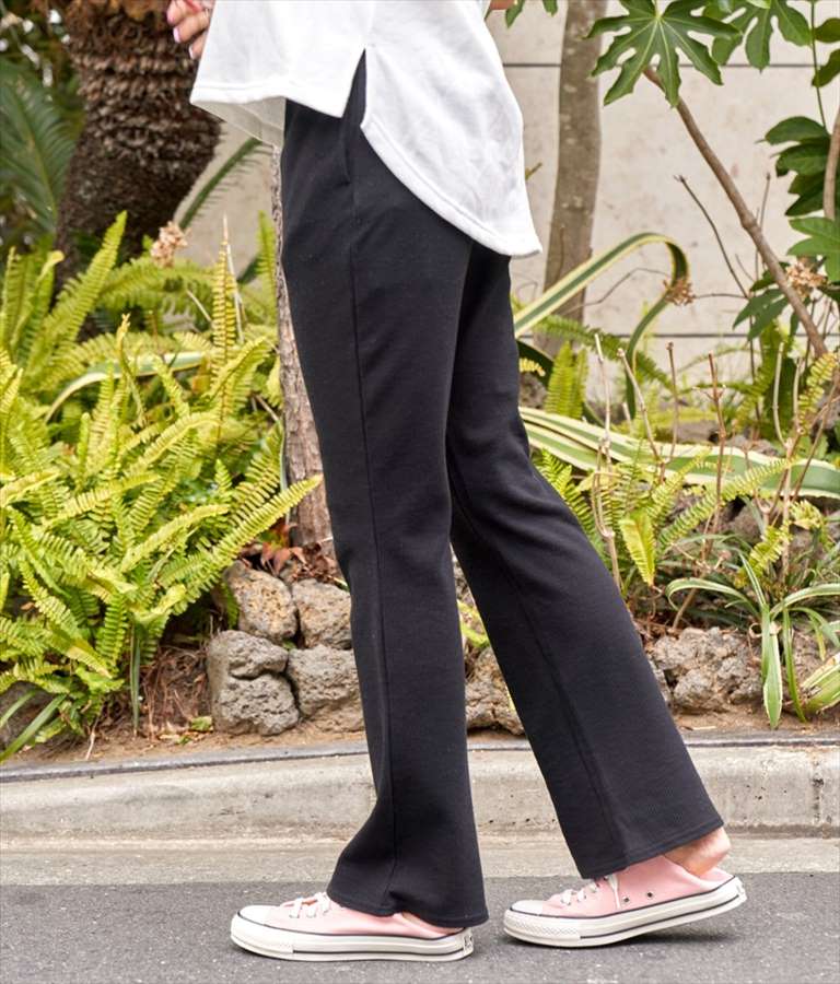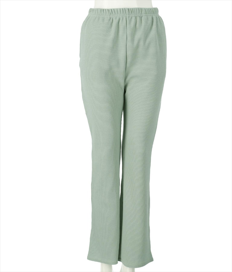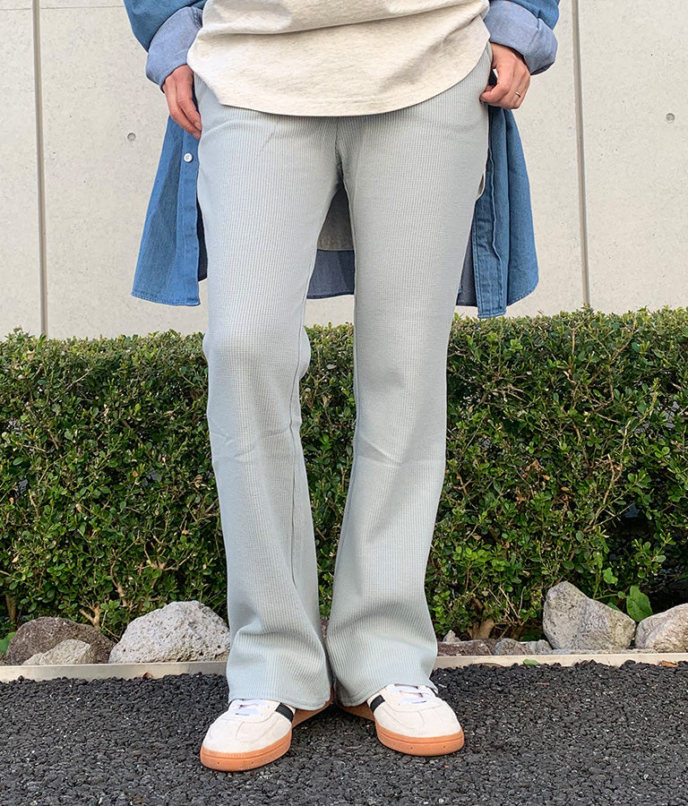 ワッフル素材で着心地抜群のフレアパンツ。