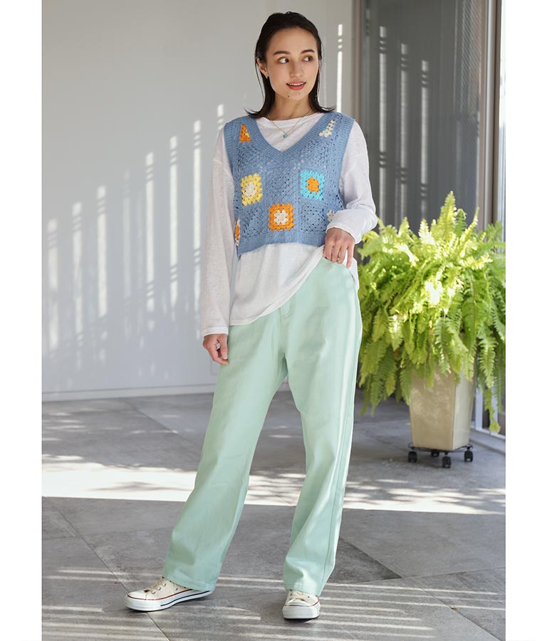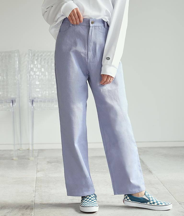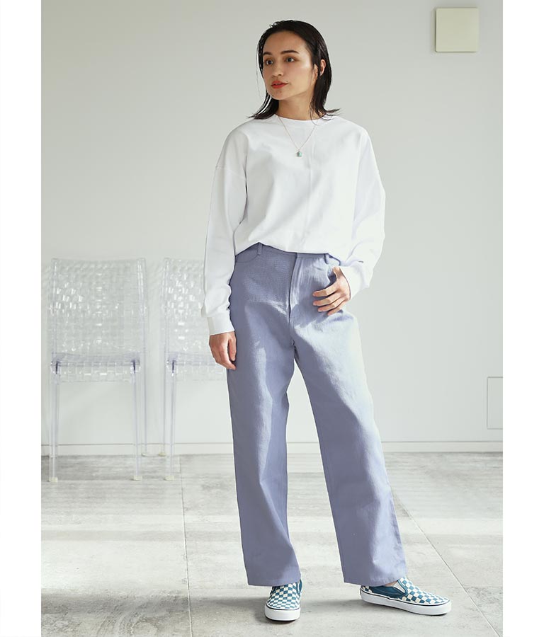 レッグラインを拾いにくいワイドストレートシルエットを採用。