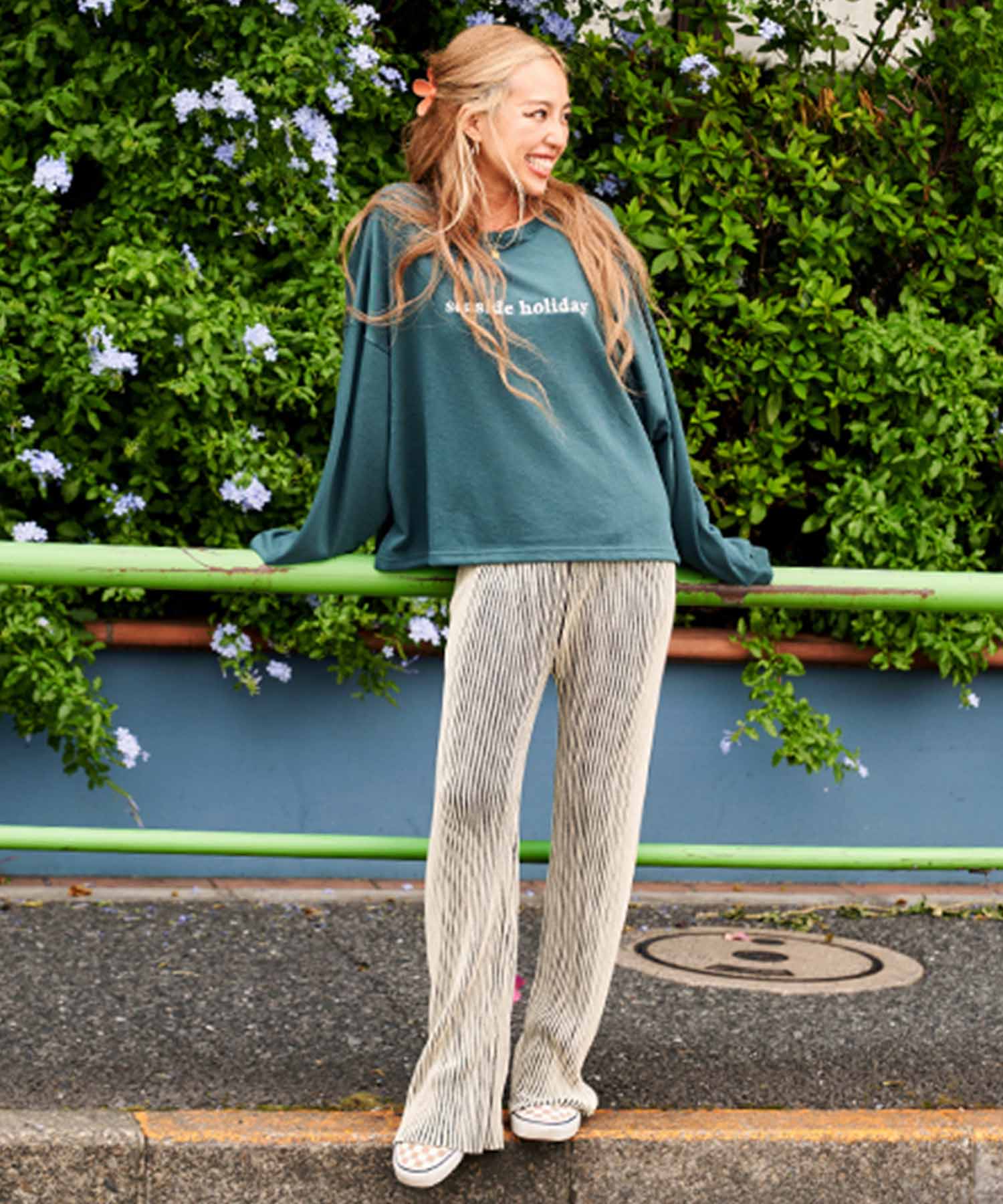 落ち感のきれいなストレートシルエットで脚長効果も抜群です。