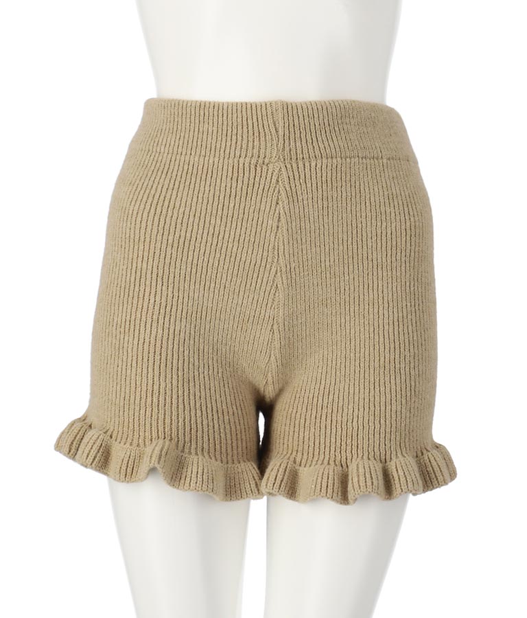 今季トレンドのやわらかいニット生地のフリルショートパンツ。