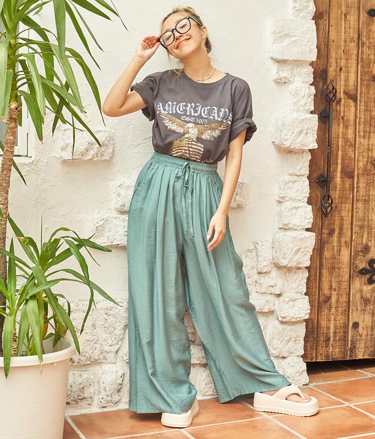 広めのワイドシルエットで気になる腰周りや脚もカバーして着こなしていただけます。