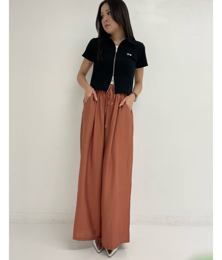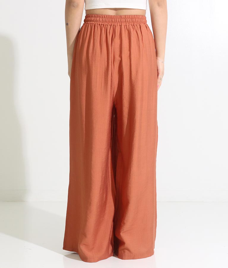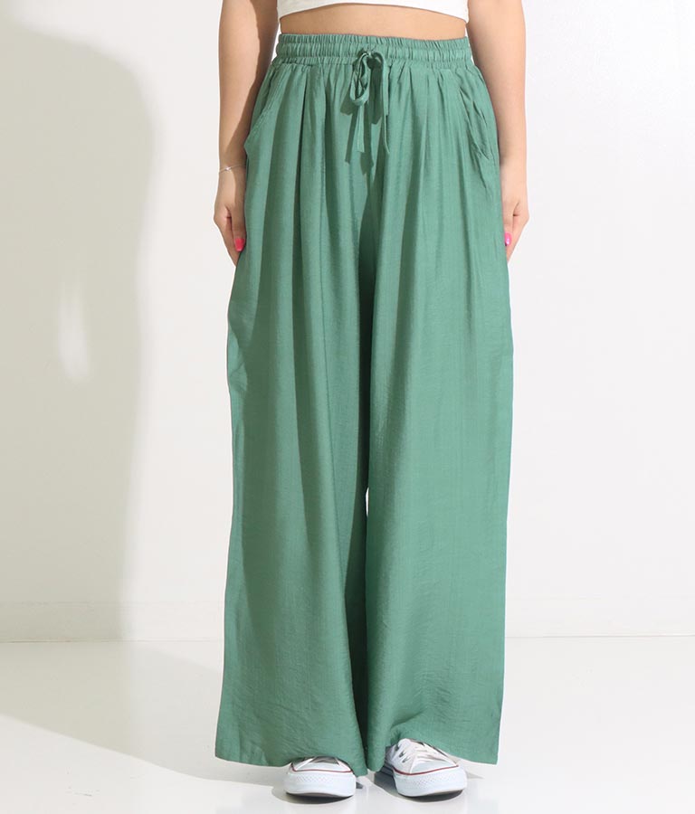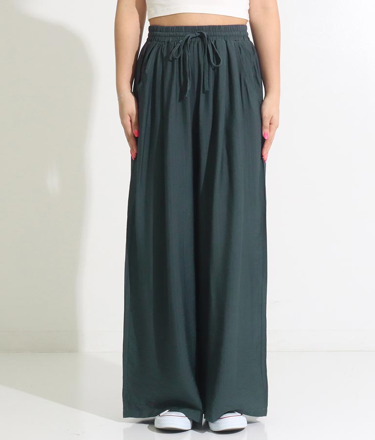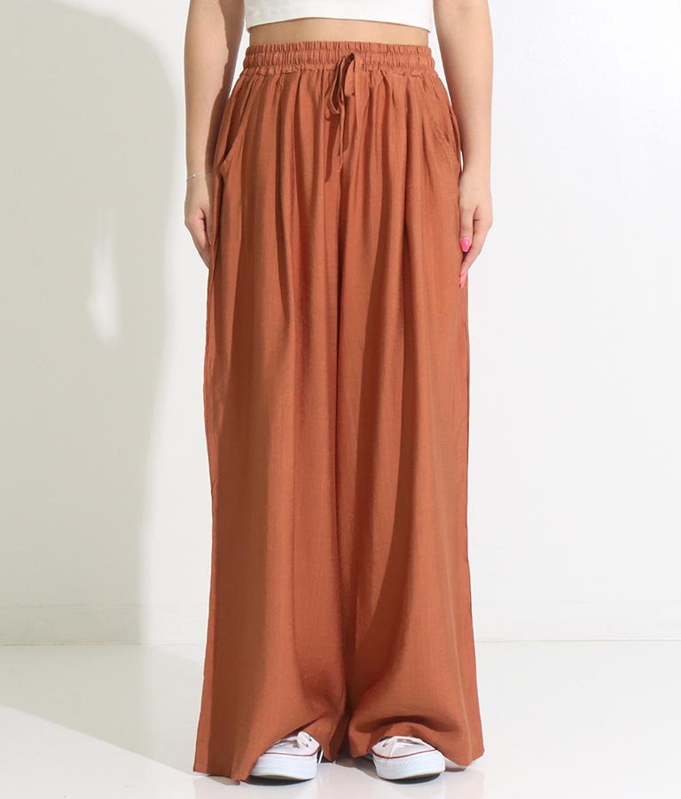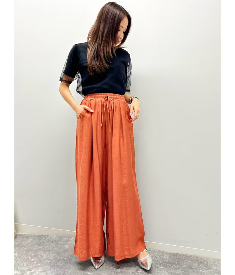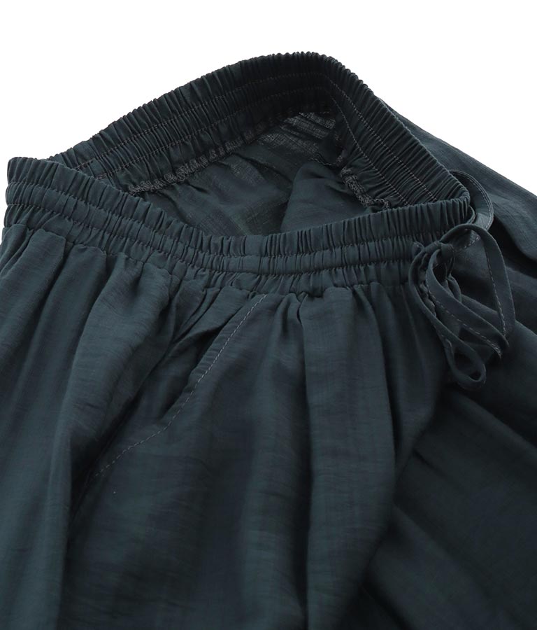さらりとしたポリエステル素材とウエスト総ゴムでストレスフリーな着心地。