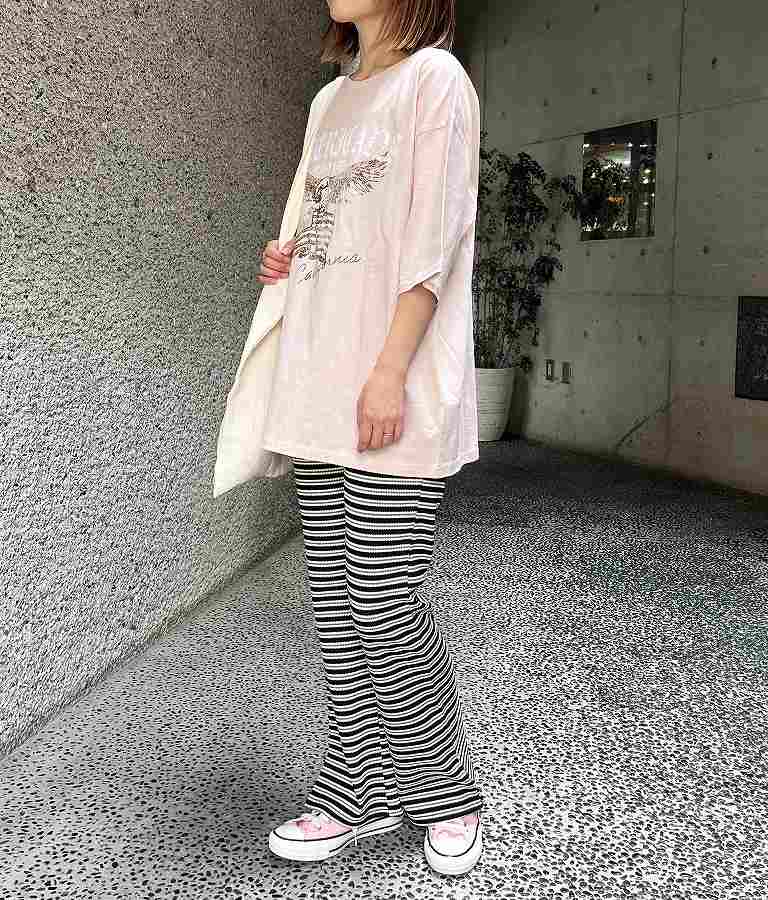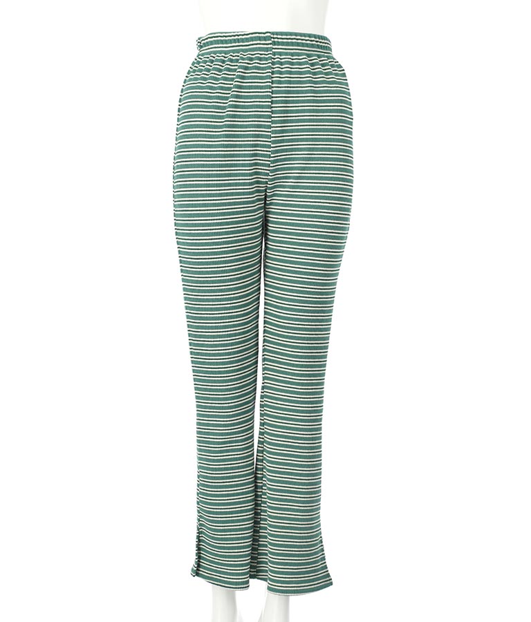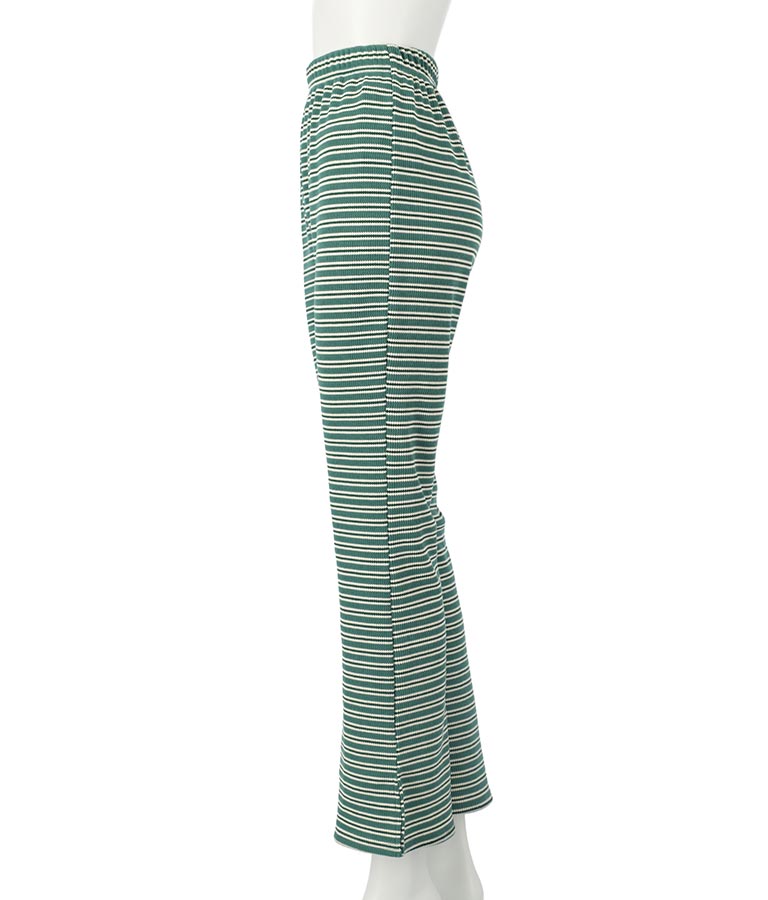 ワッフル ボーダー ソフト フレア リラックス パンツ 852-5888