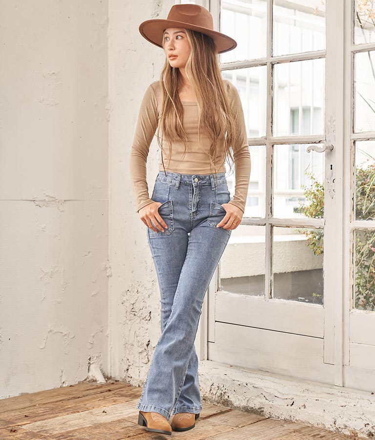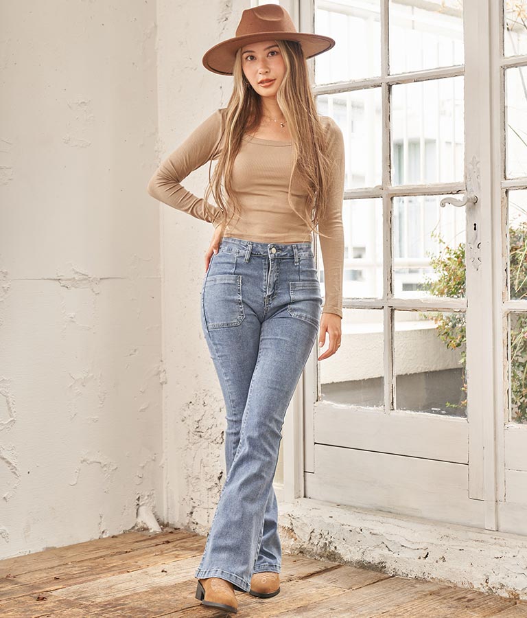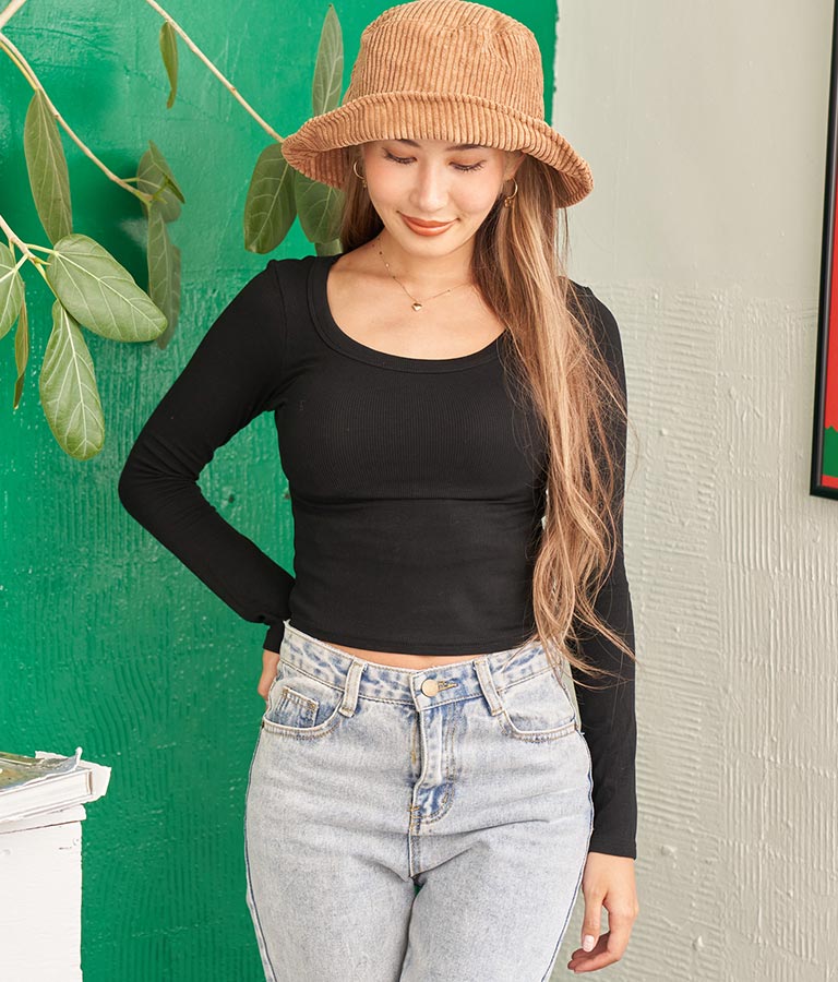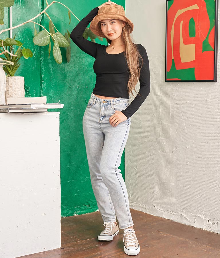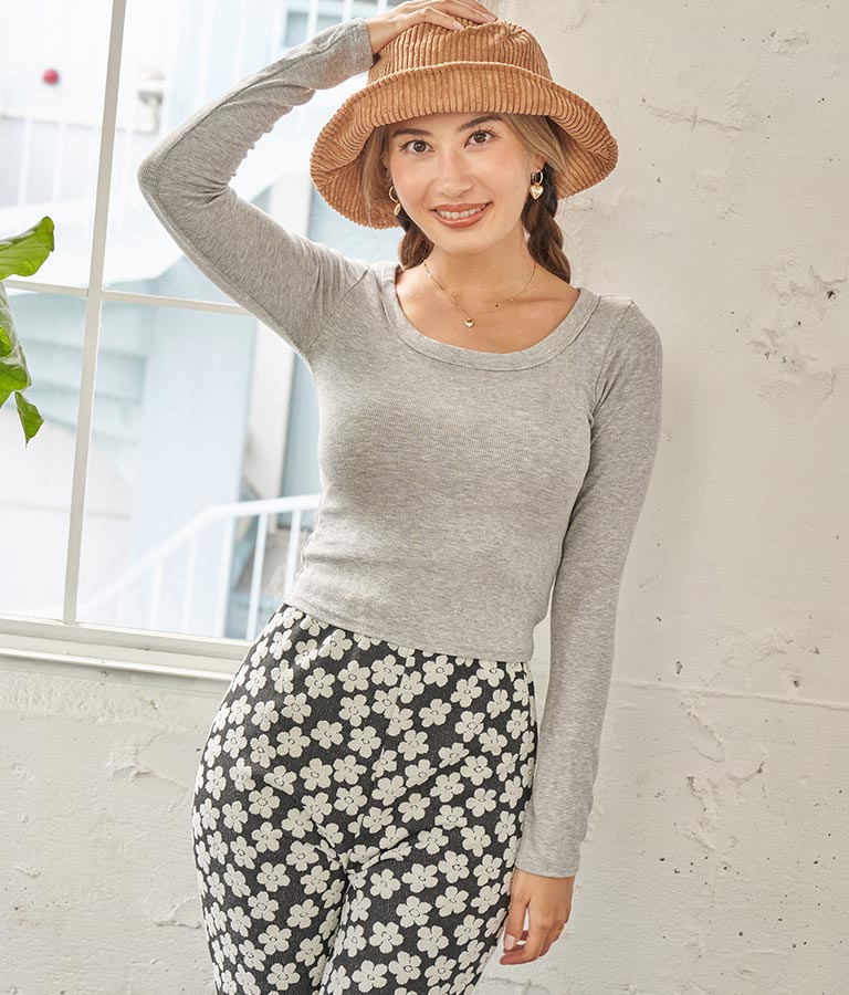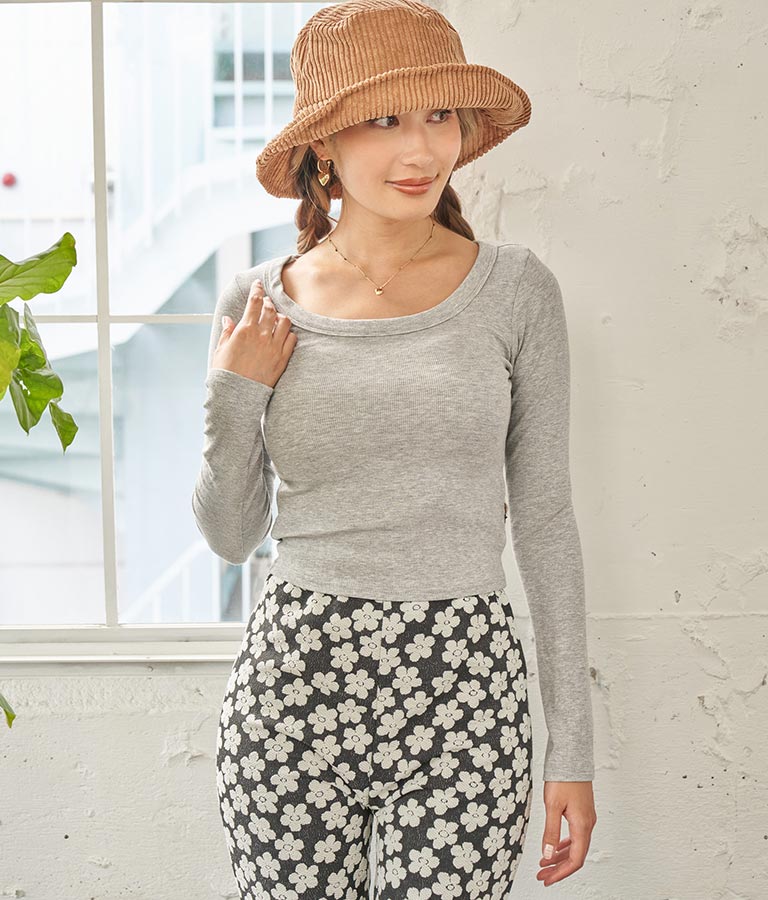 細いリブで程よいストレッチ感があり、タイトなシルエットで細見え効果も期待できます。