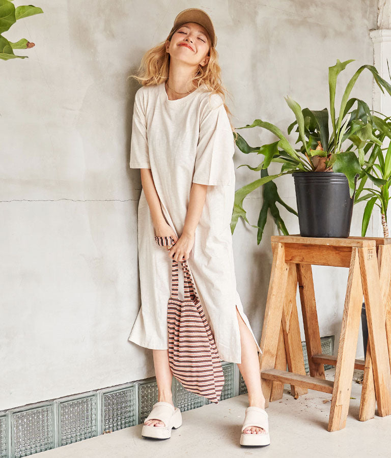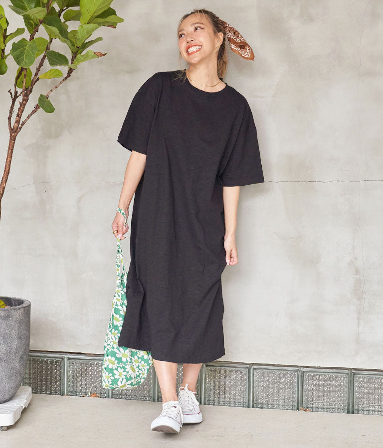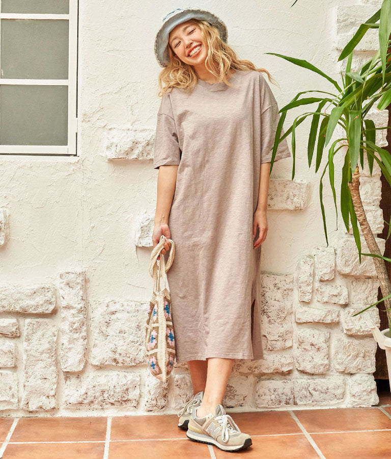シンプルで使い勝手抜群な無地のロングワンピース。