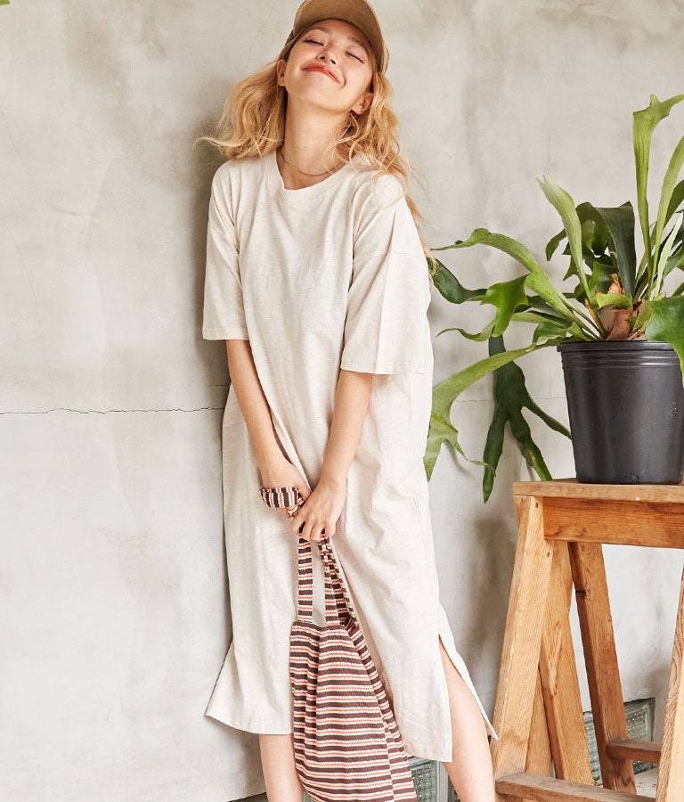 ワンピースとして楽しむのはもちろん、デニムやレギンスなどのボトムを合わせても◎