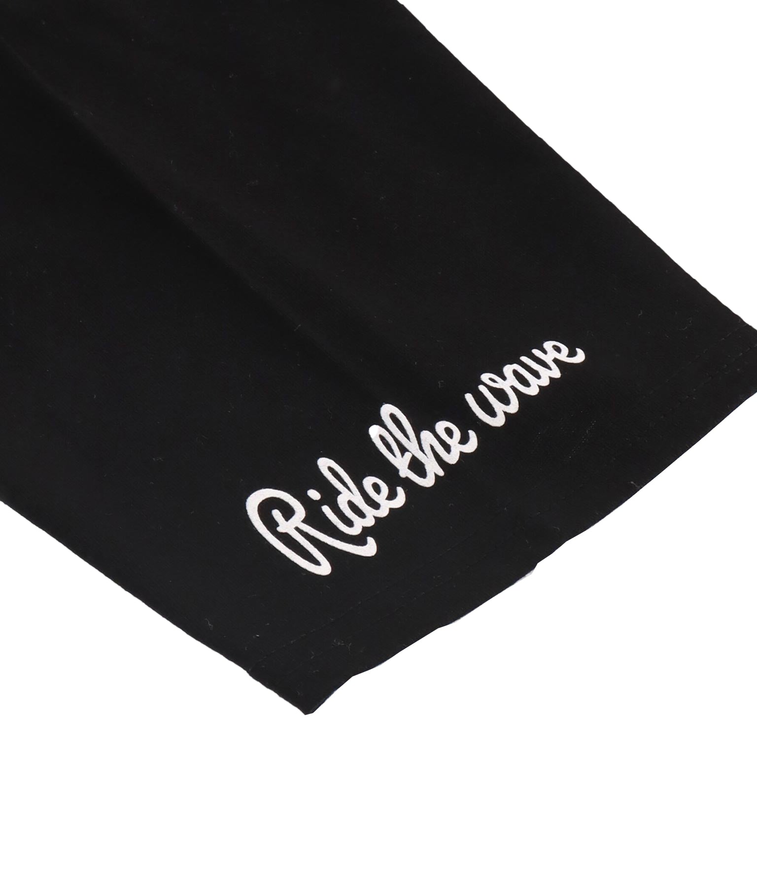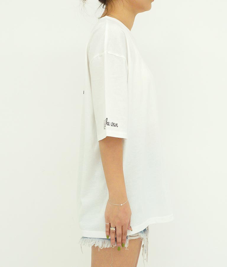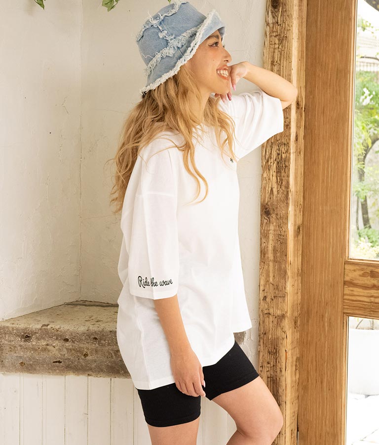 袖にも英字プリントを施し、どこから見てもデザイン性のある作りが◎