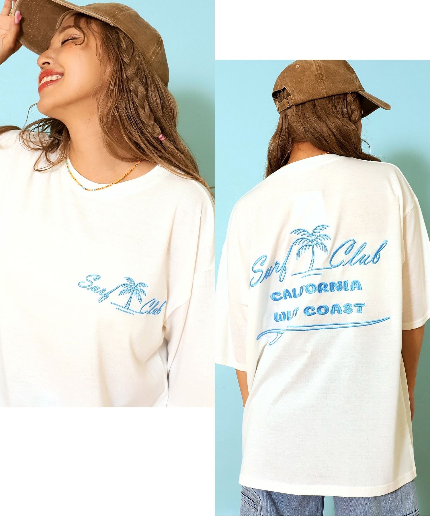 フロントにサーフテイストのメッセージ刺繍をあしらった、リラックス感あるTシャツ。ドロップショルダーとゆとりのあるシルエットで、気になるラインもカバーしながら自然な抜け感を演出します。しっかりめのコットン素材で透けにくく、デイリー使いにぴったり。カラー展開も落ち着きがあり、大人のカジュアルスタイルに溶け込むデザインです。