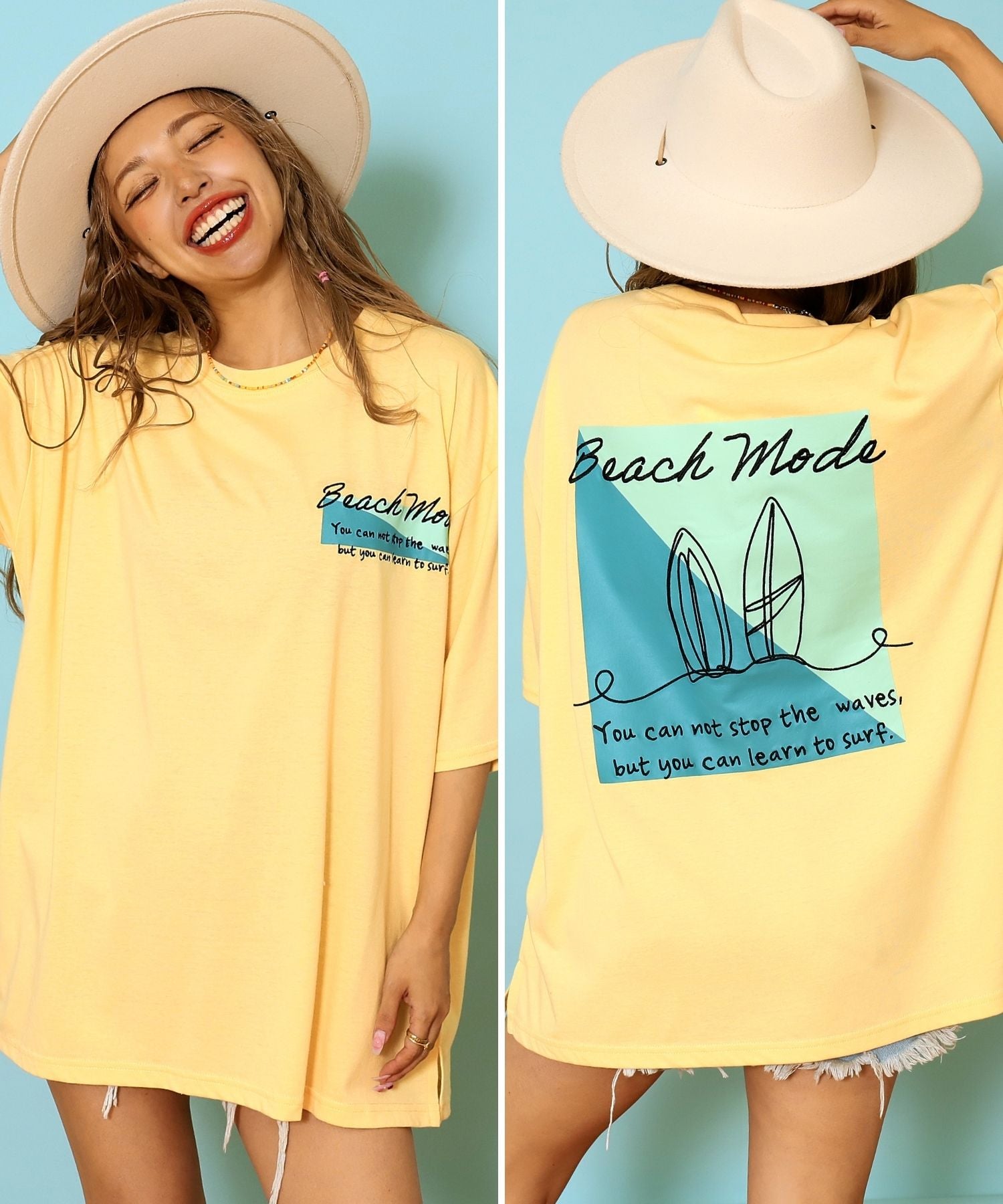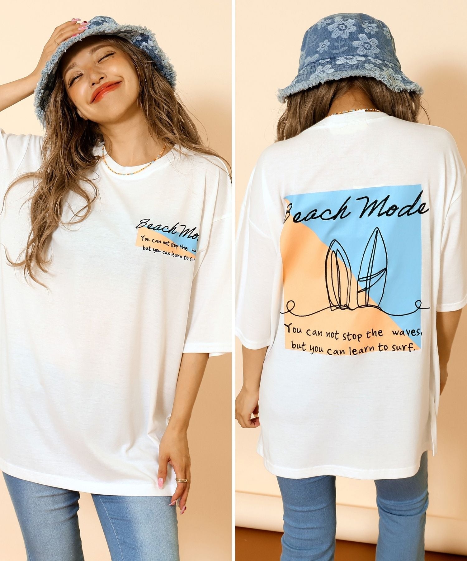 柔らかなコットン素材に、カラーグラデーションを効かせたサーフモチーフ刺繍を施した一枚。肩を落としたオーバーサイズシルエットで、ゆったりとしたリラックス感を演出します。ヒップまで隠れる着丈は、気になるラインをさりげなくカバー。刺繍の色味も控えめで、カジュアルになりすぎず程よく大人びた雰囲気に仕上がります。