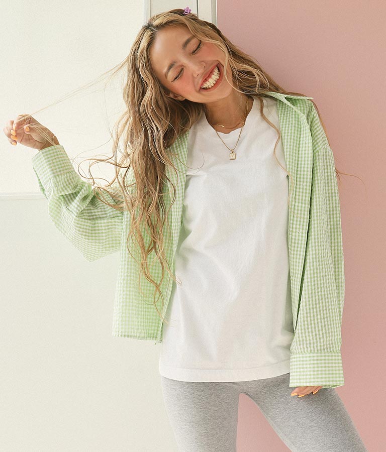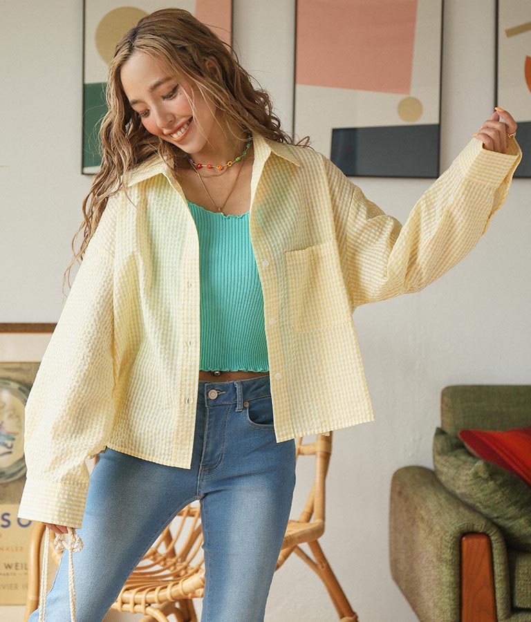華やかなカラーリングがアクセントになるギンガムチェックシャツです。