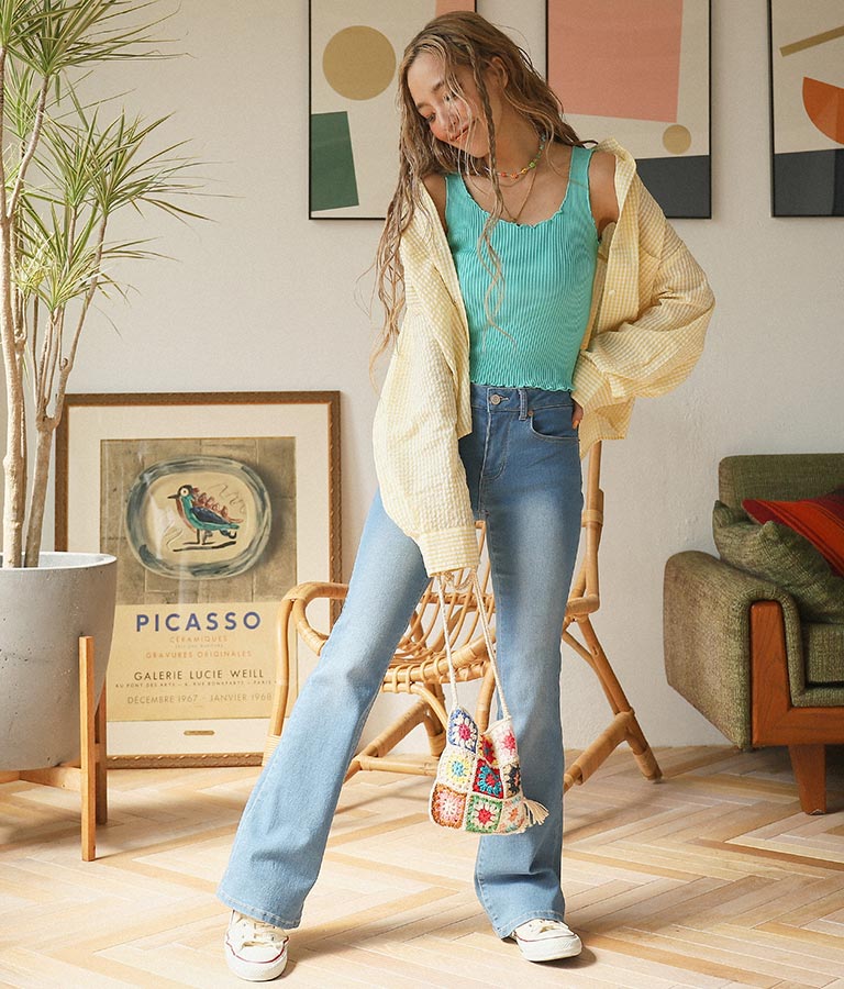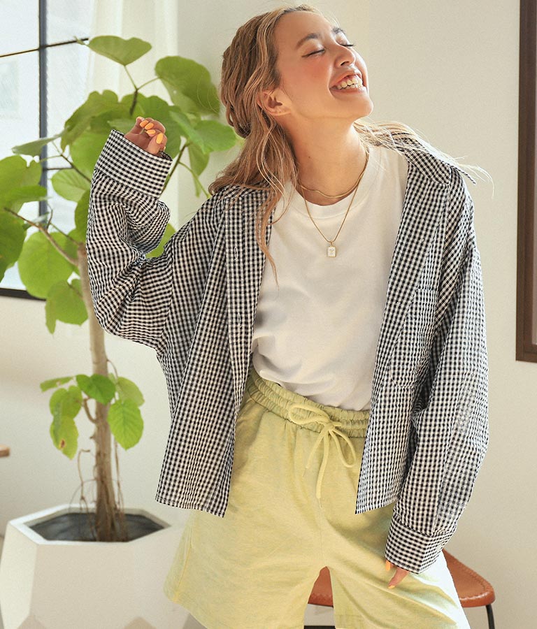 クロップド丈なので、ハイウエストボトムと相性よく、ライトアウターとしてはもちろん、トップスとしても映える1枚です。