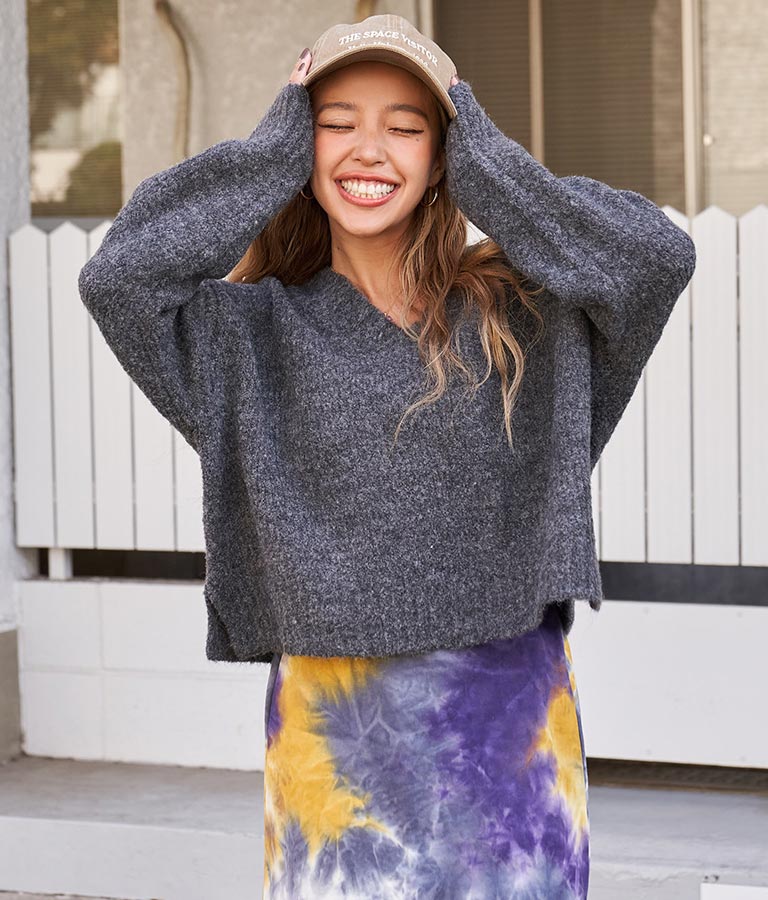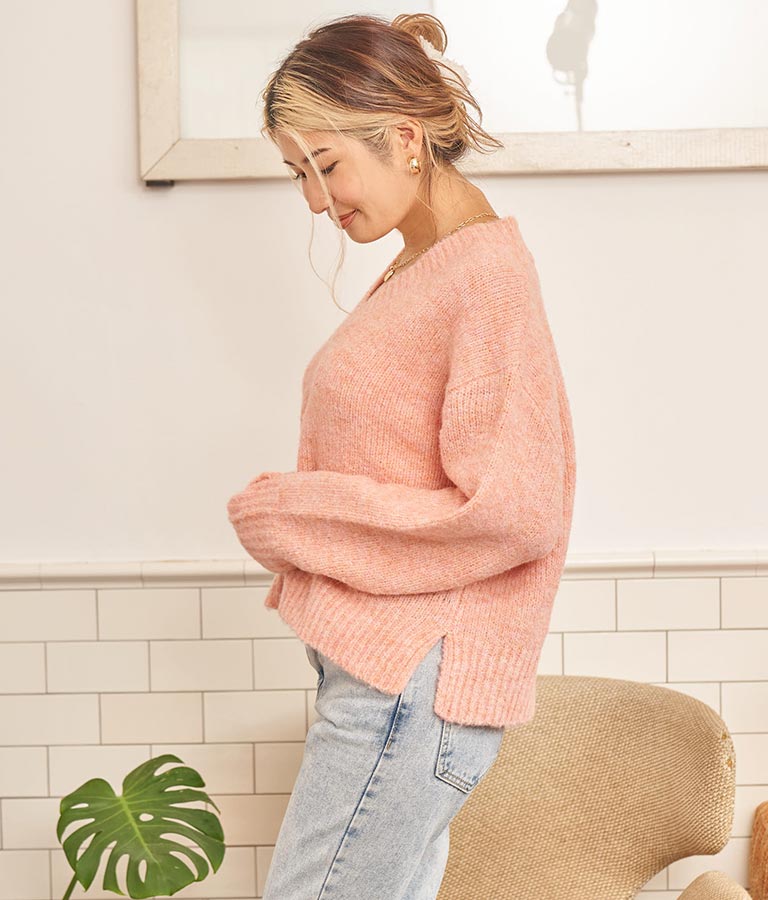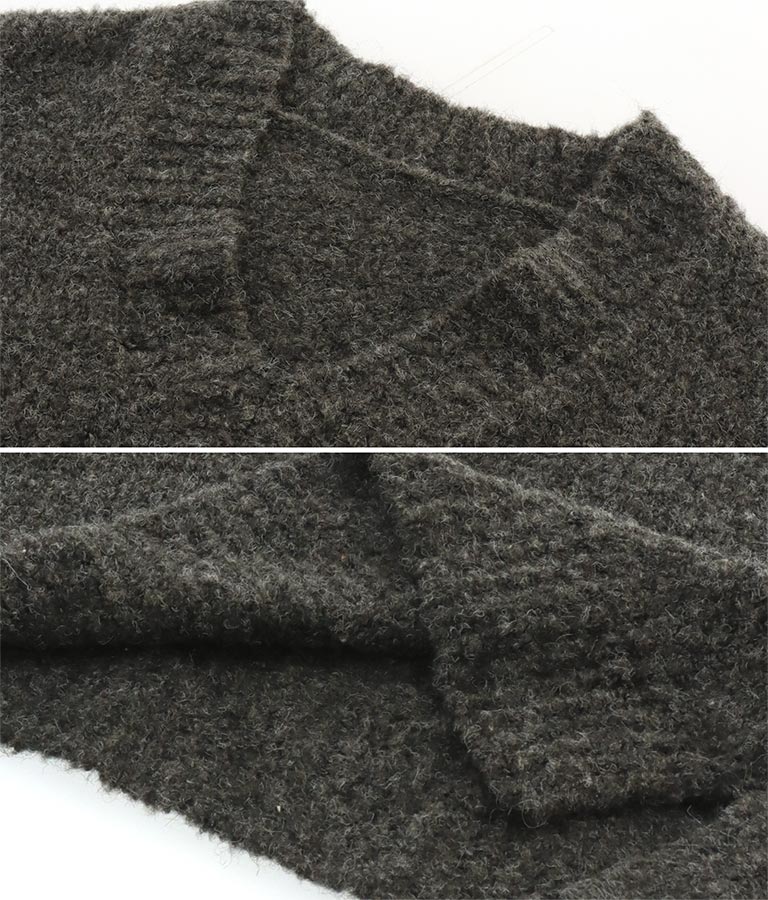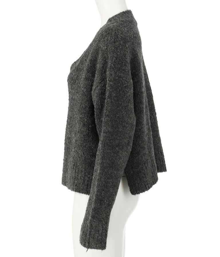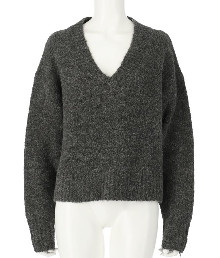 ふわふわとした起毛感のあるウール混のミックスニット素材で、もやもやとしたカラーがスタイリングに取り入れやすい1枚です。
