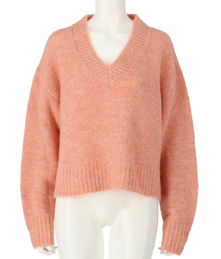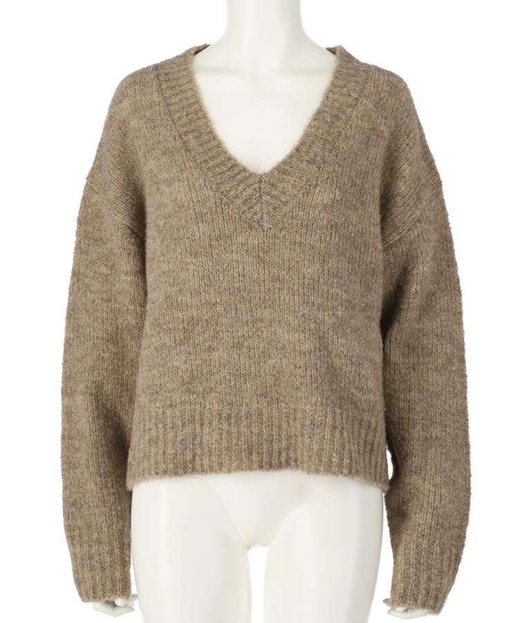 ウール混VネックMIXニットトップス