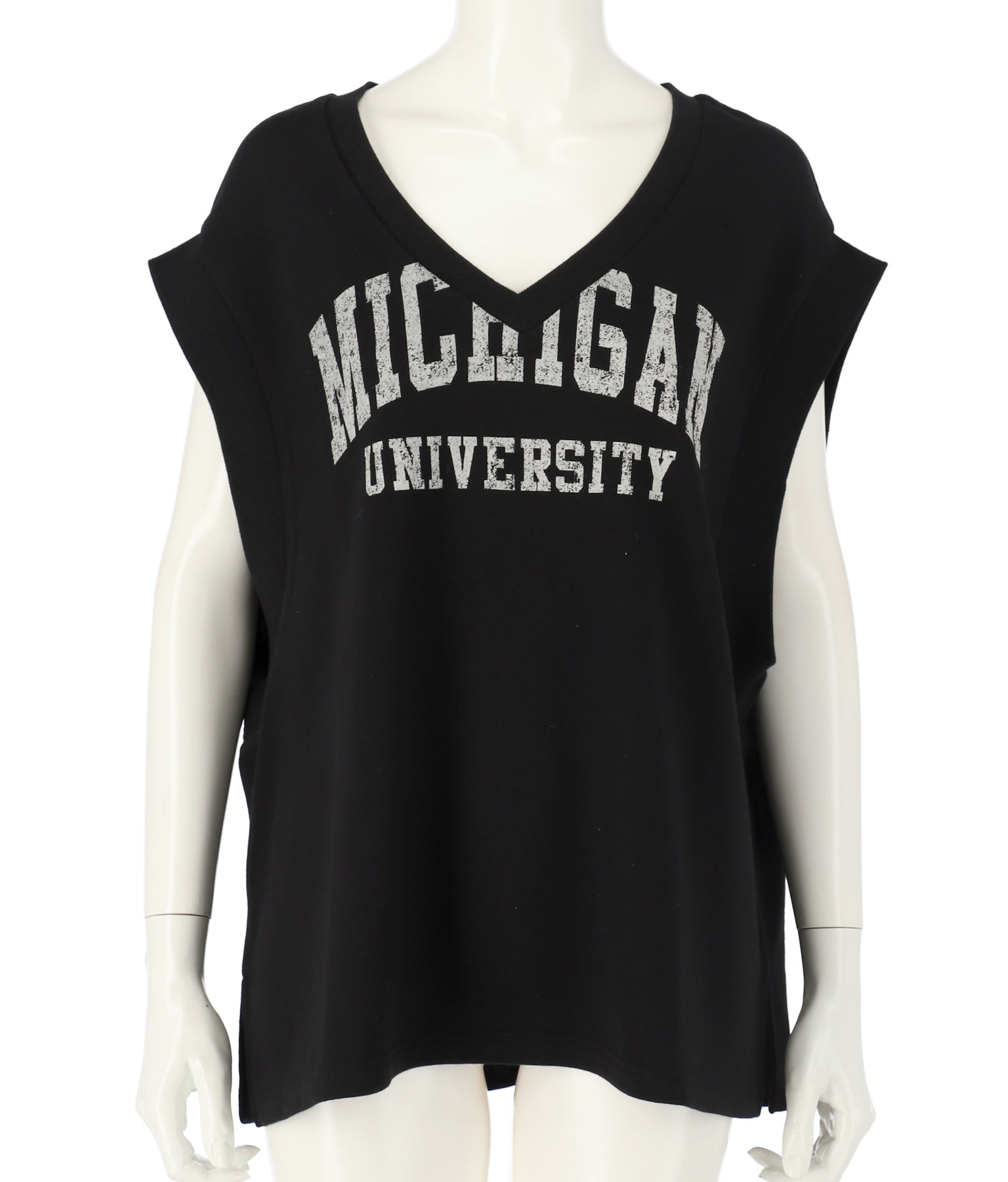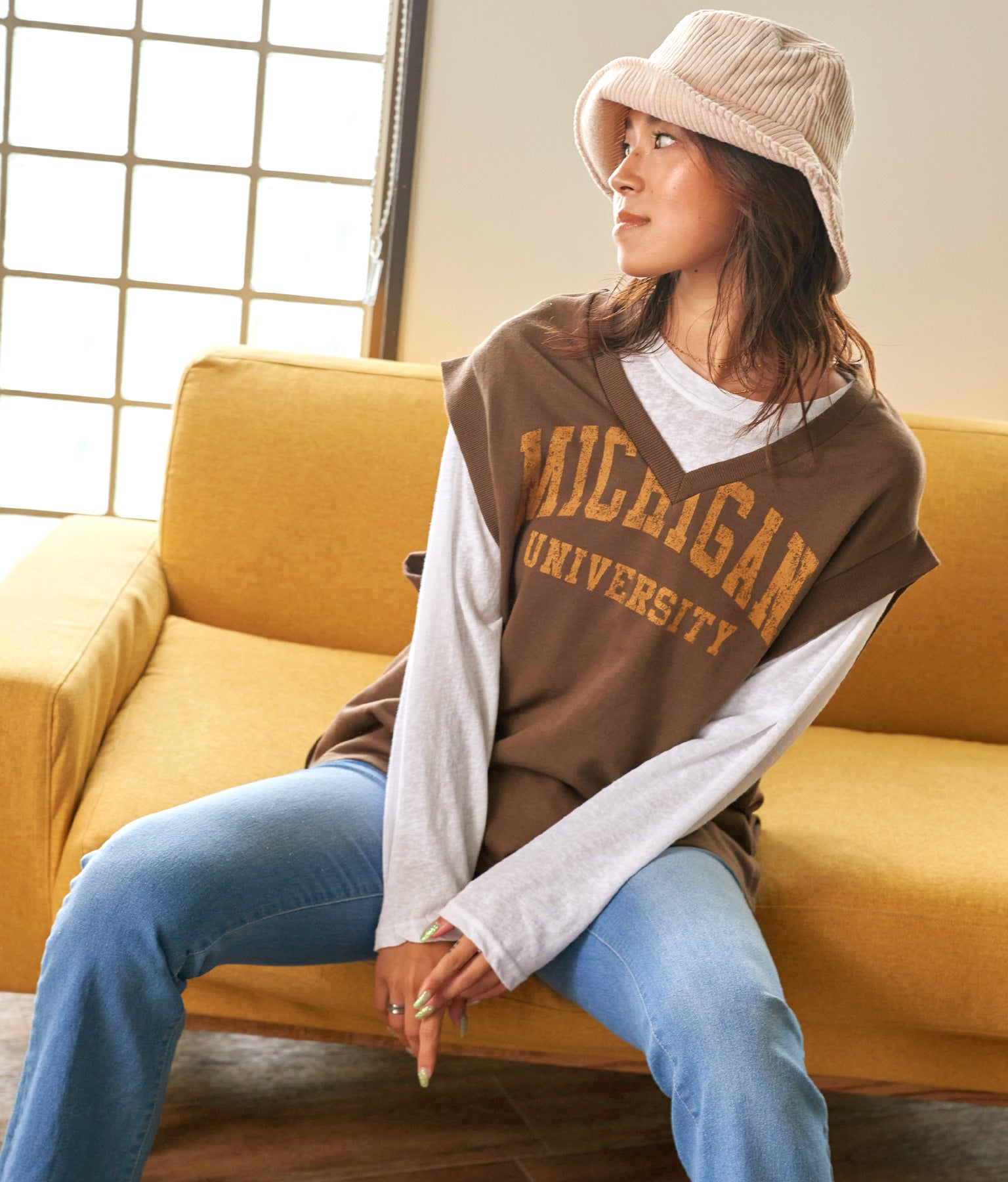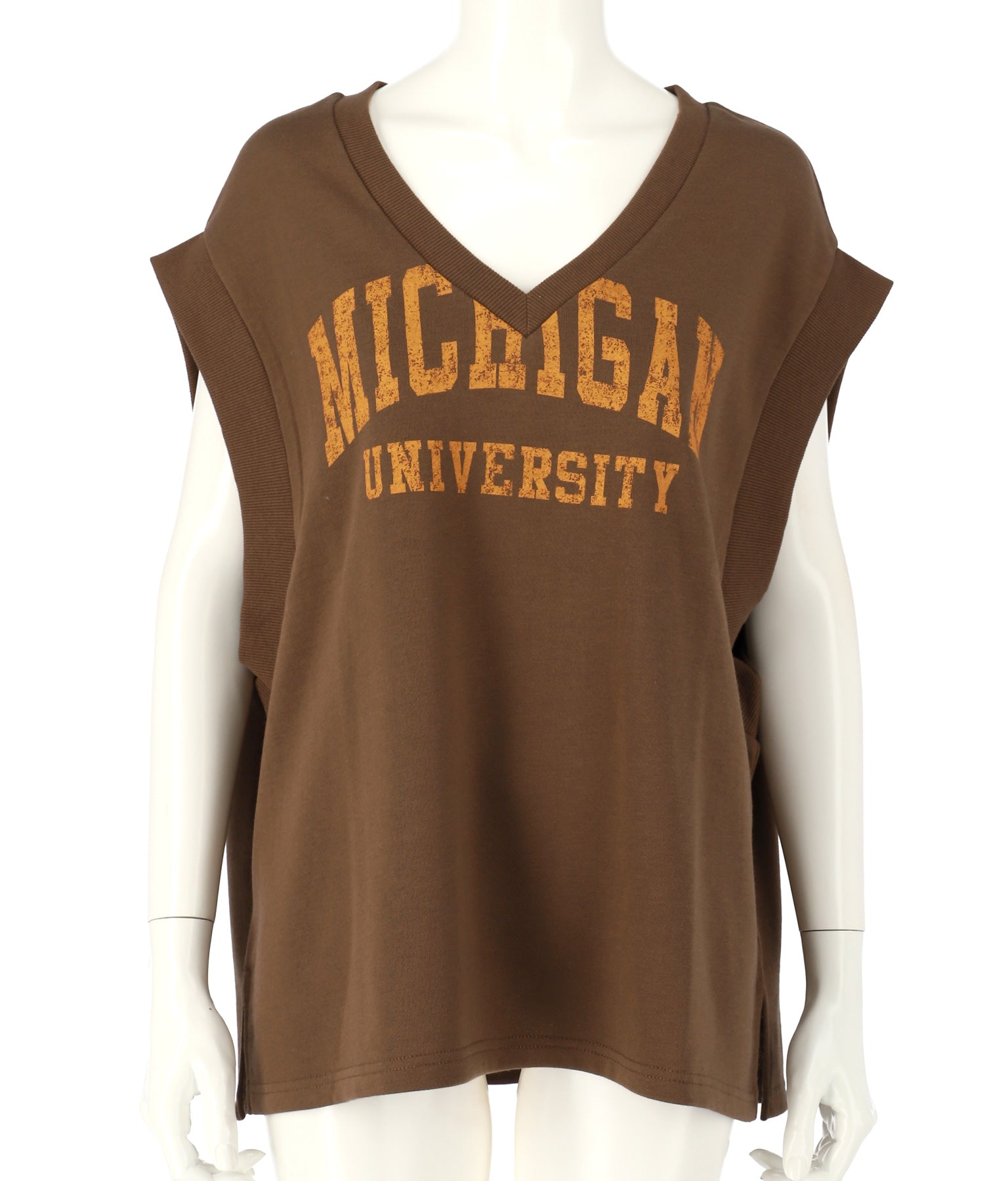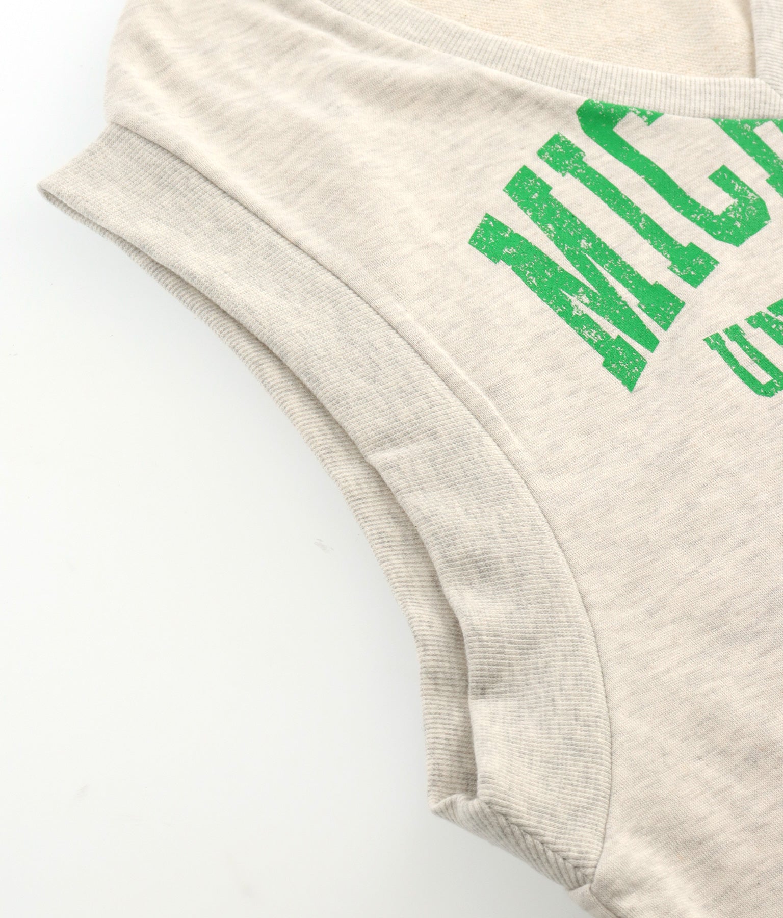 カジュアルなカレッジロゴプリント入りのスウェット素材のBIGベスト。