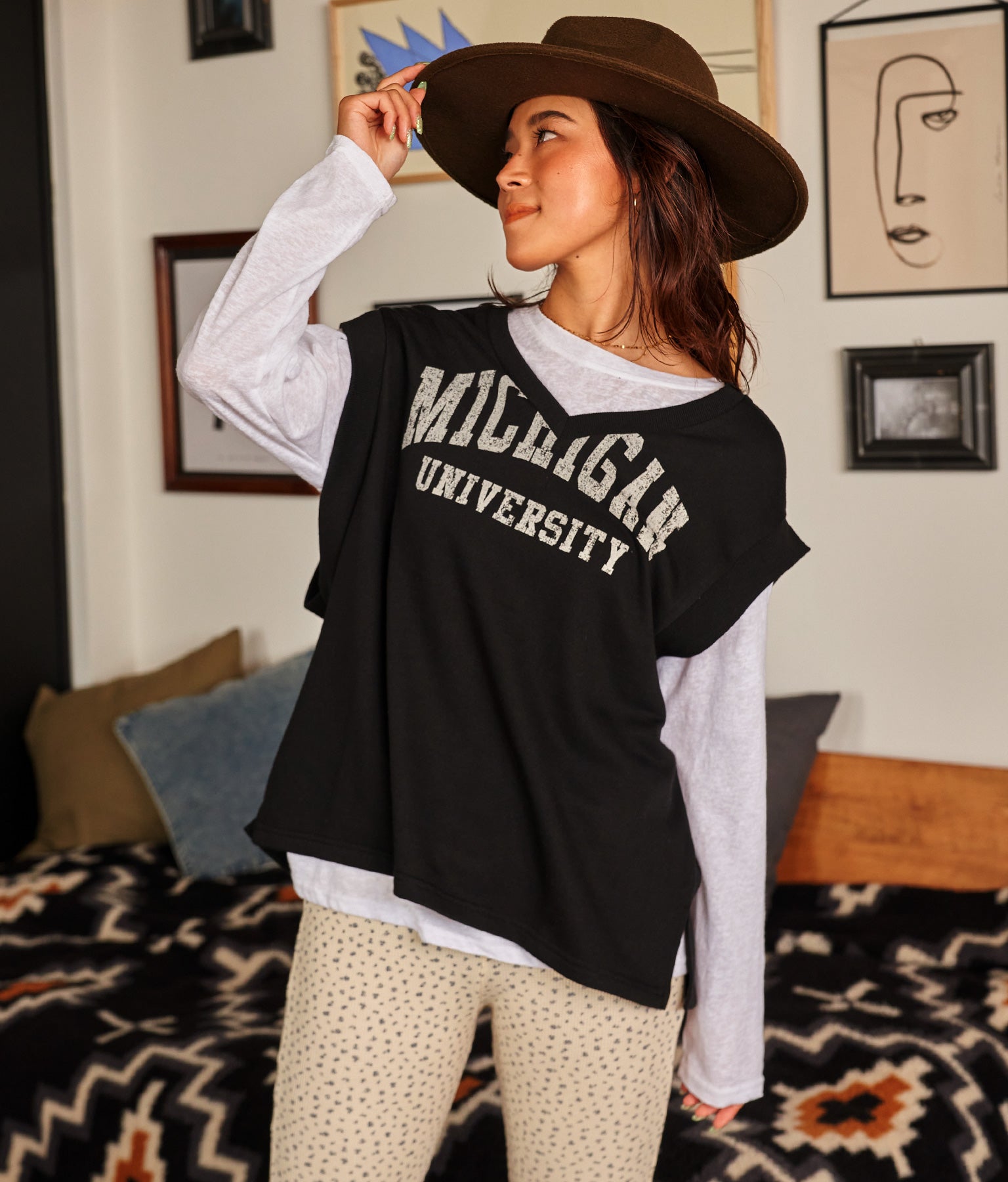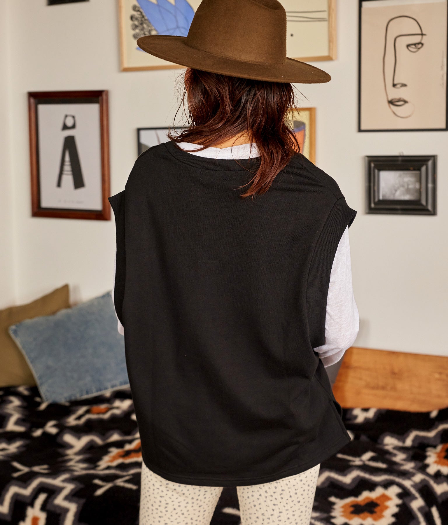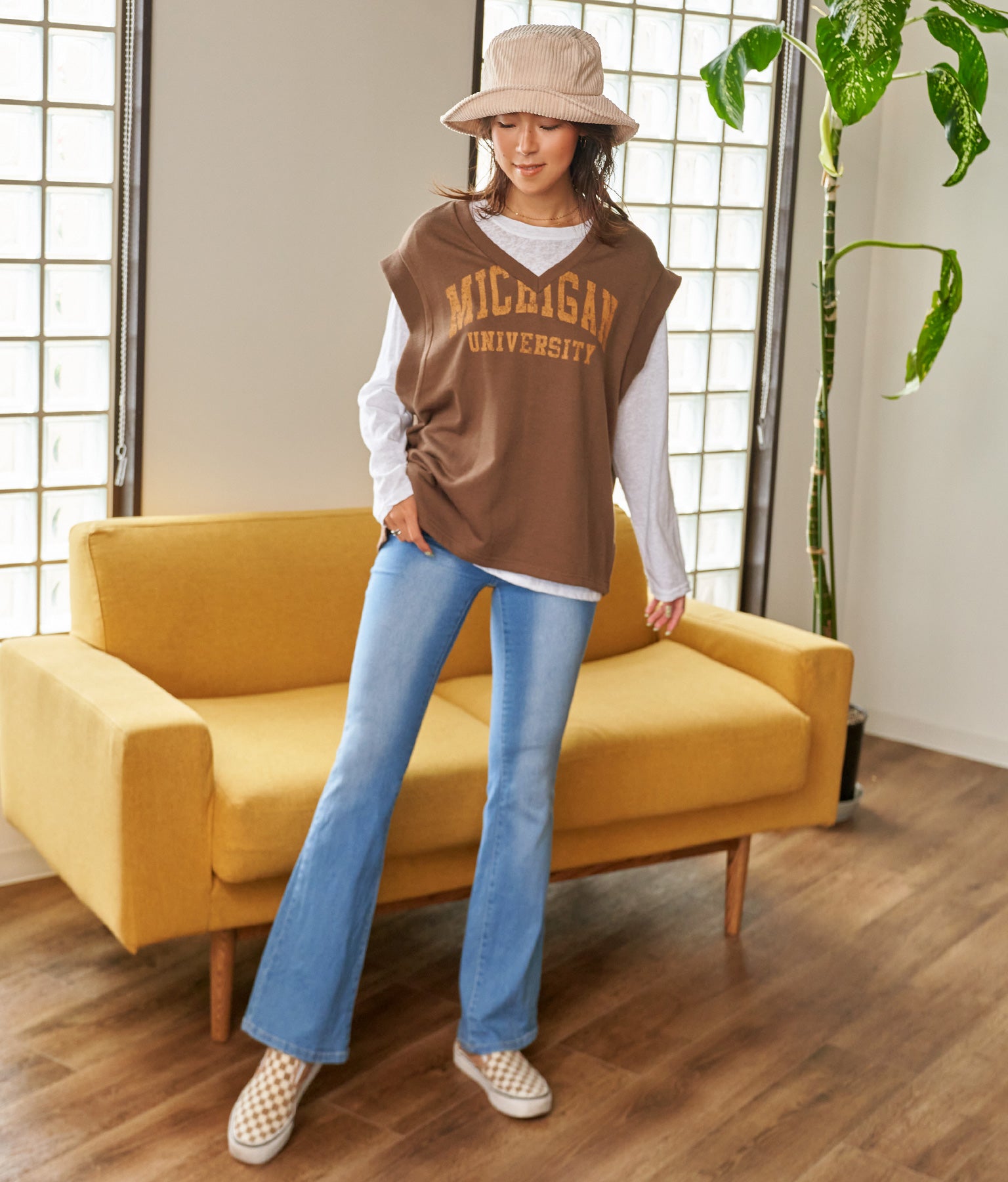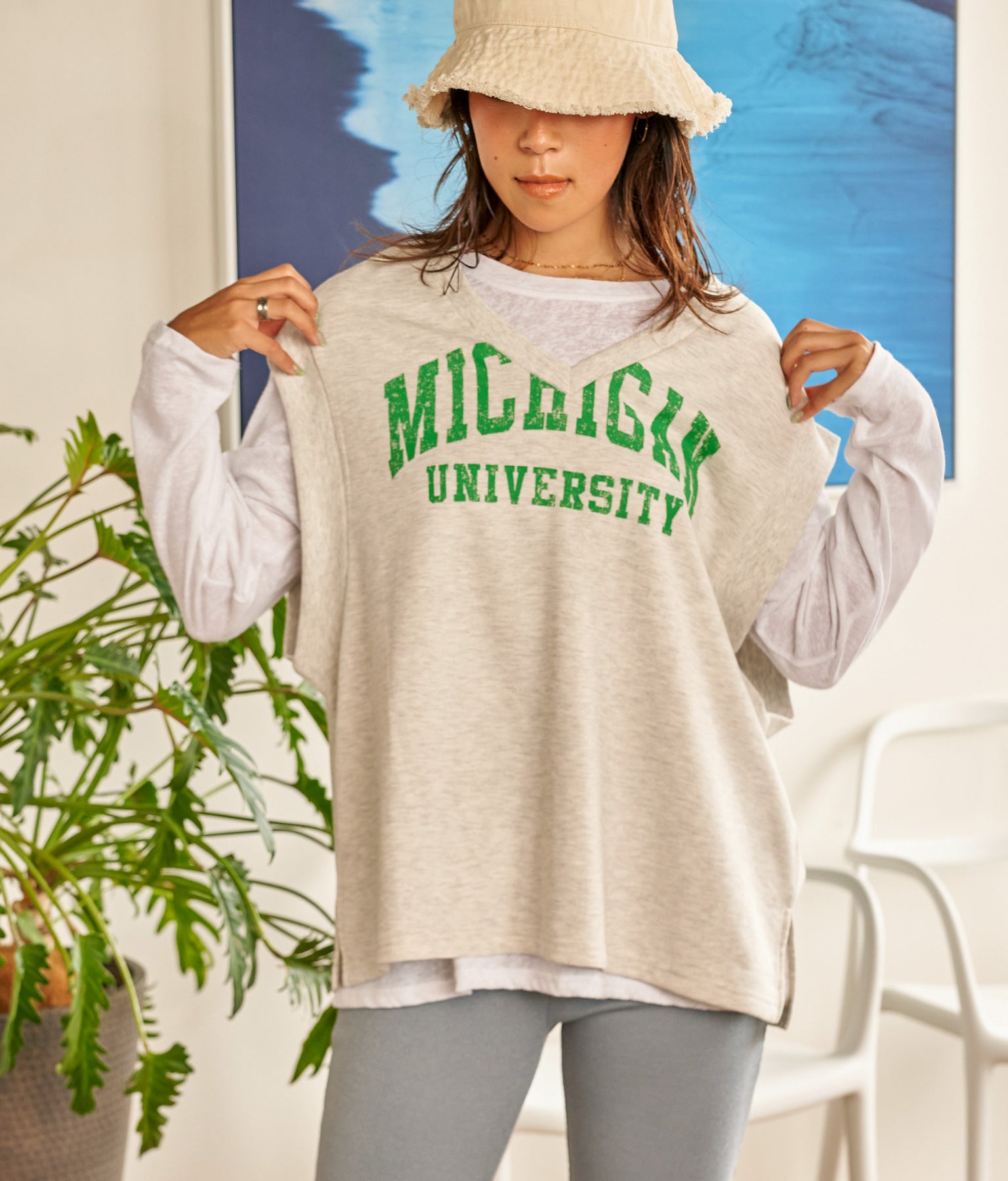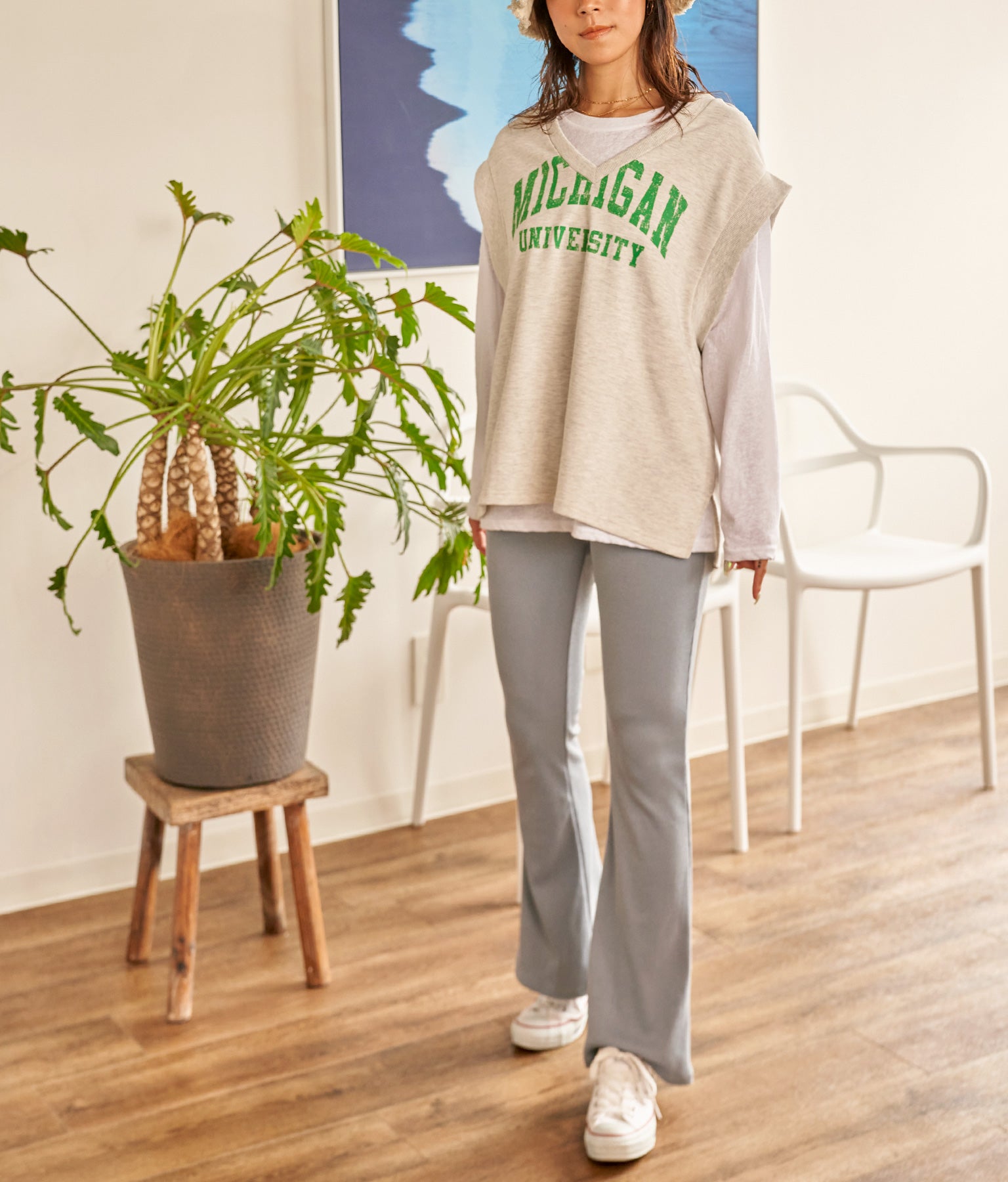 カジュアルなカレッジロゴプリント入りのスウェット素材のBIGベスト。