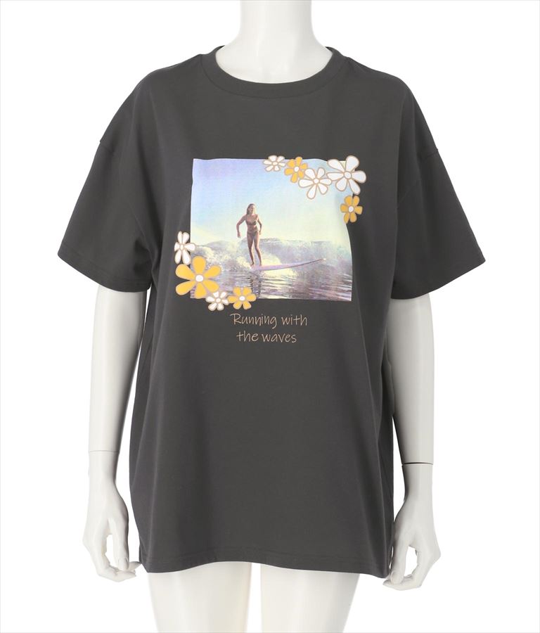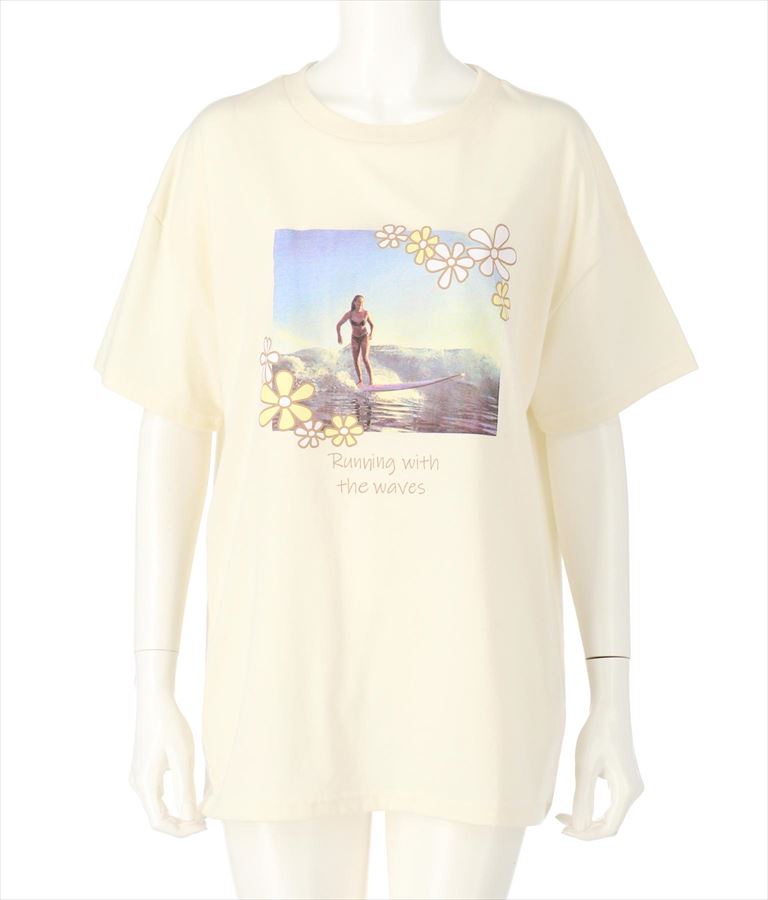 フロントのSURFGIRLのフォト転写プリントが今年らしいTシャツ。