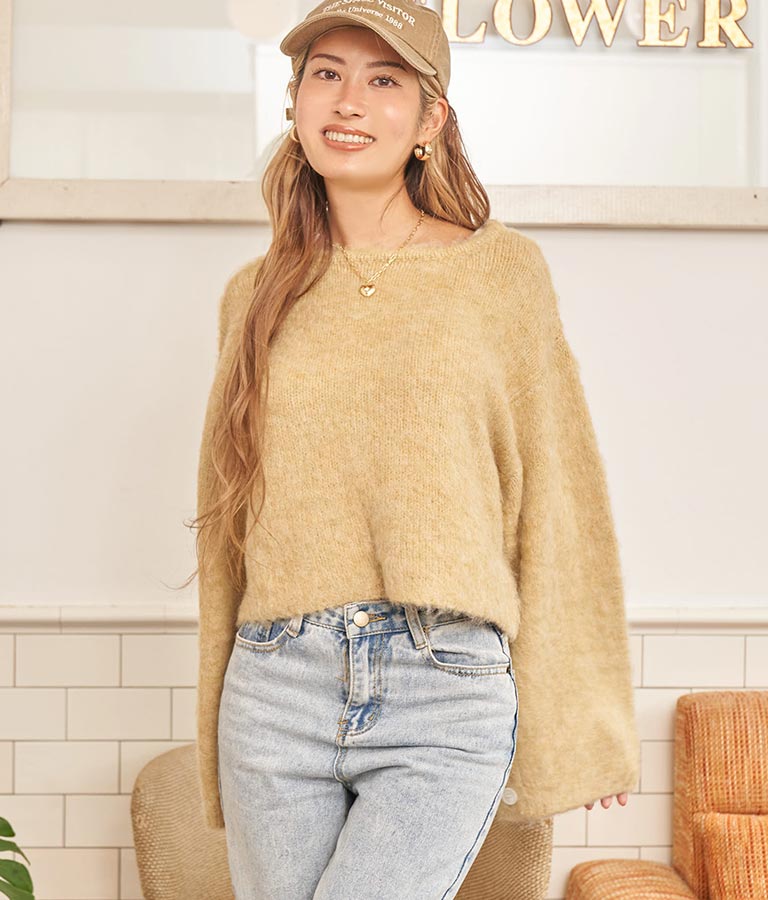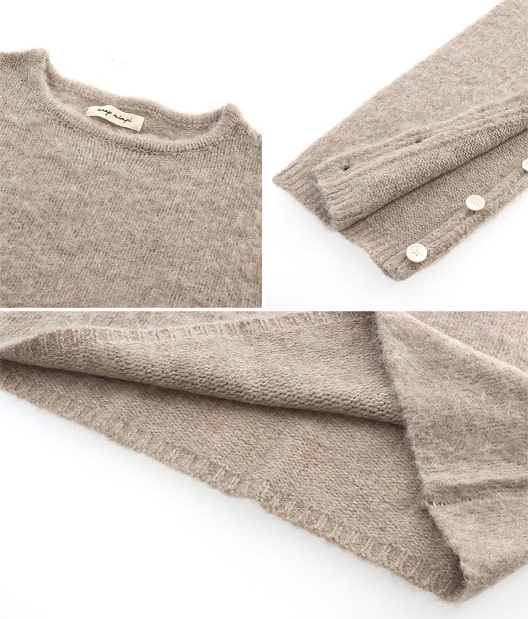 ウール混 アームボタン 起毛 ニット トップス 853-5717