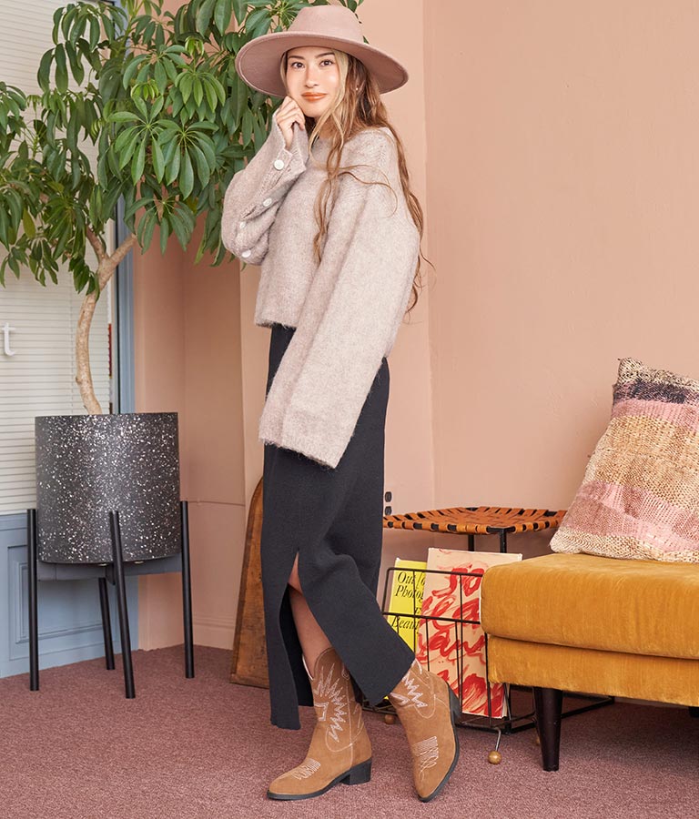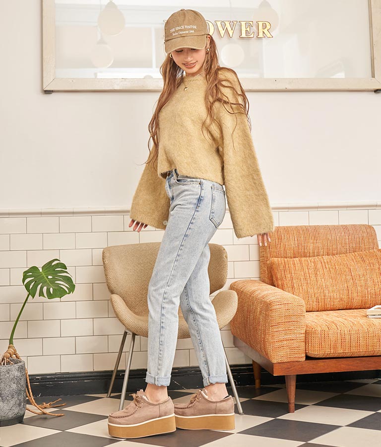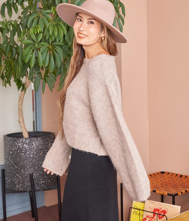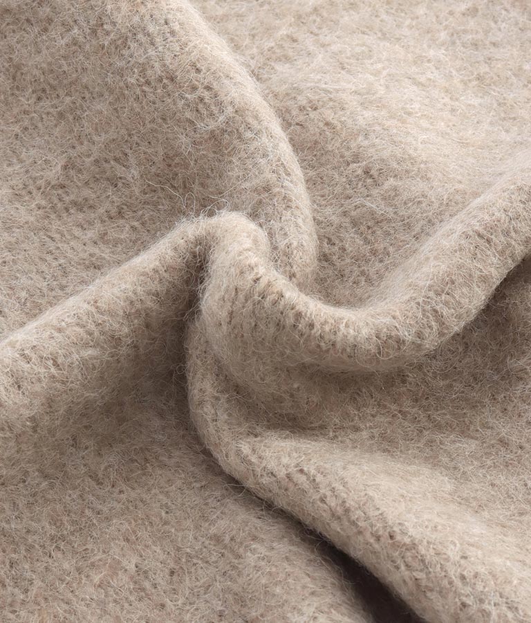起毛した柔らかい肌触りがふっくらソフトで心地よく、ウール混が高見えする素材感。