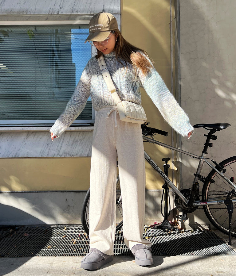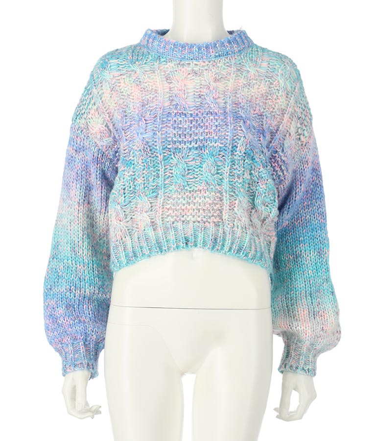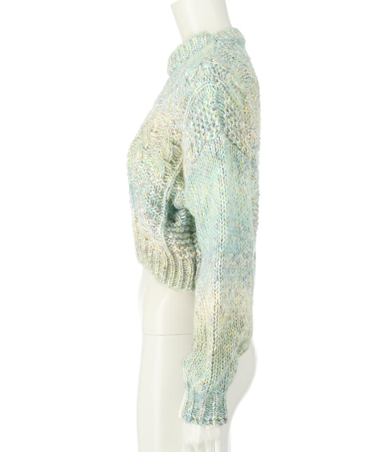 MIX糸をグラデーションに編んだショート丈ニットトップス。