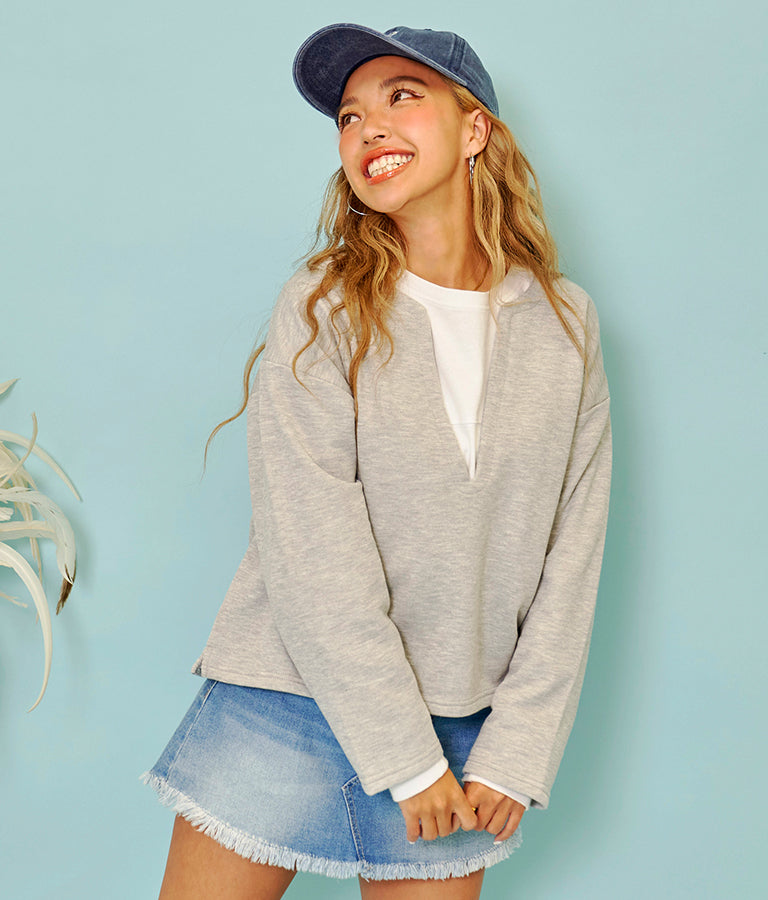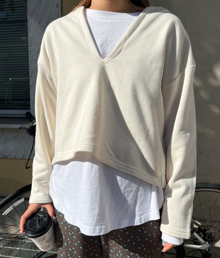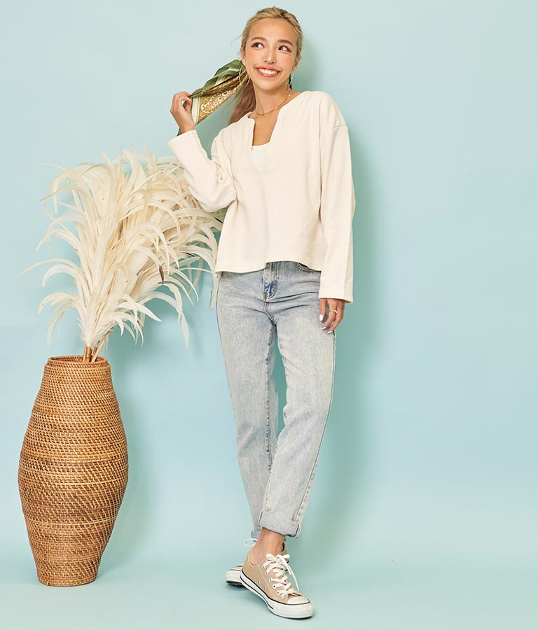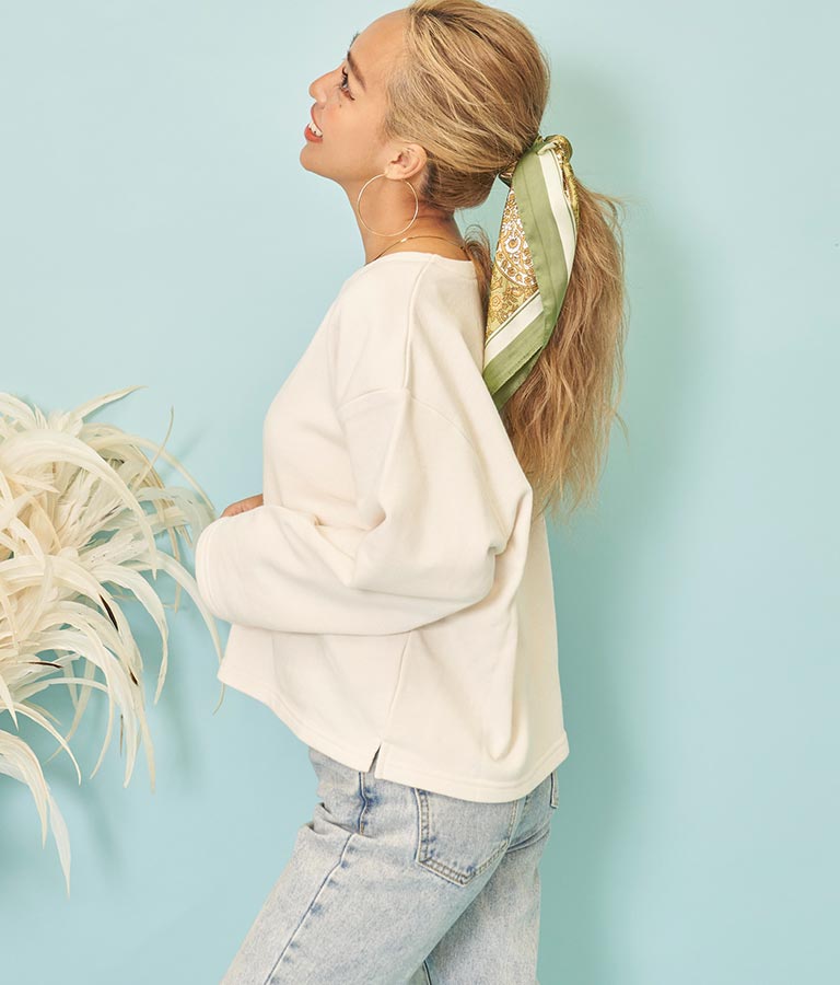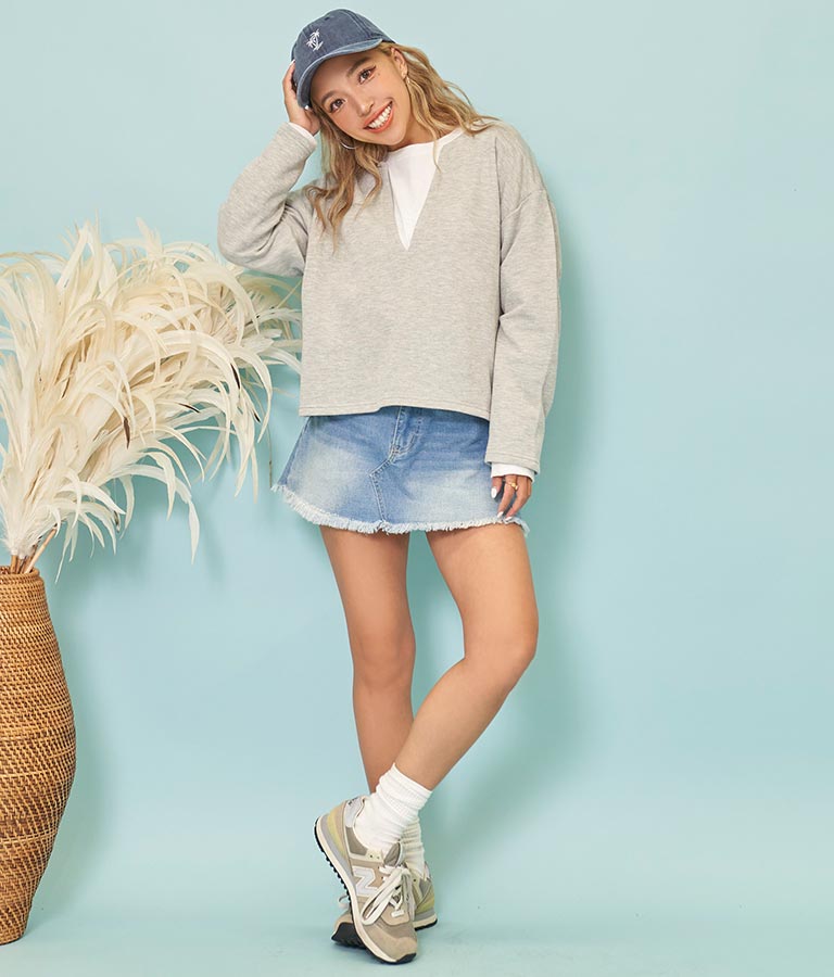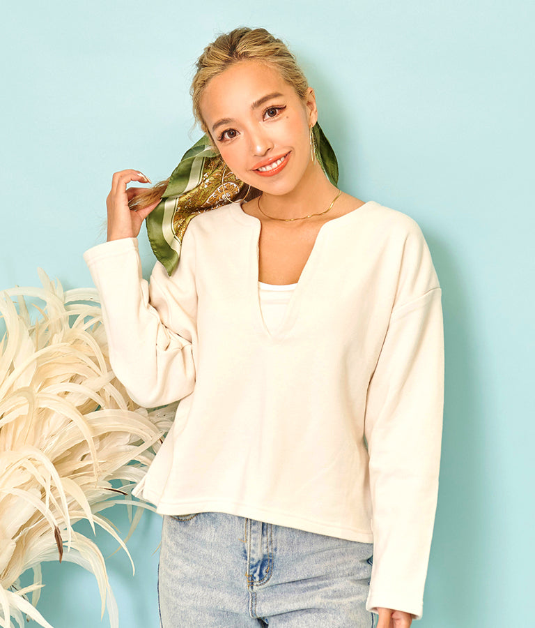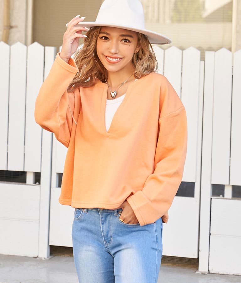 キーネック 裏毛 スウェット クロップド トレーナー 853-5820