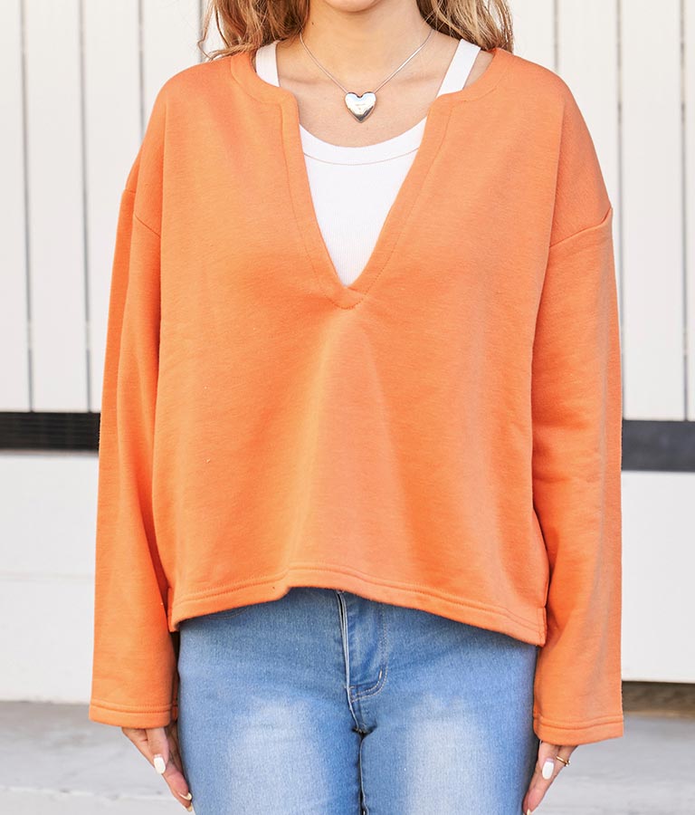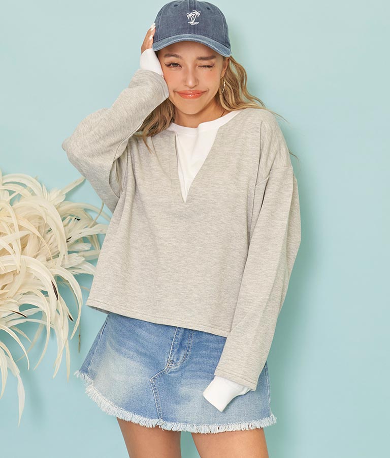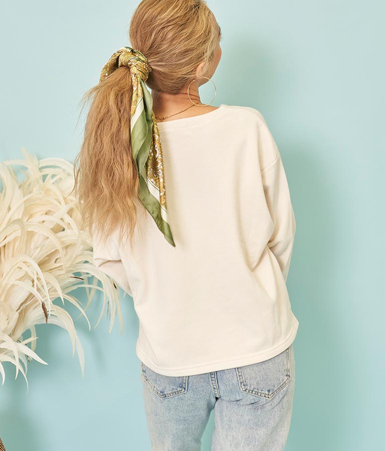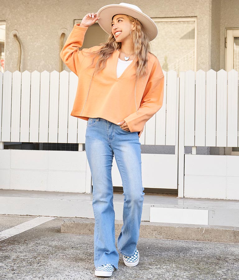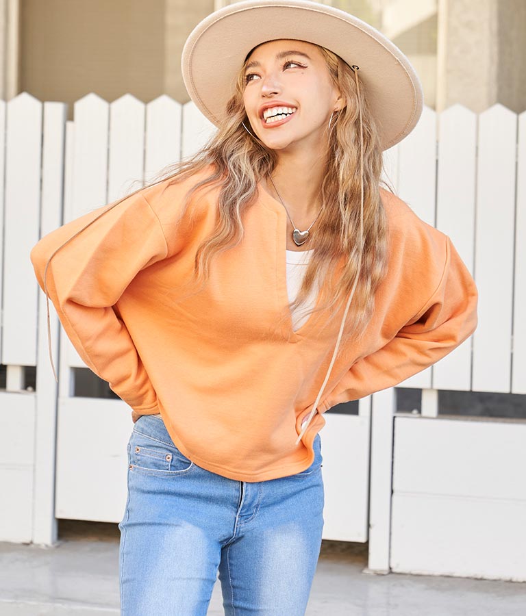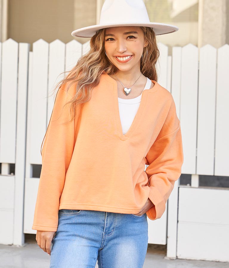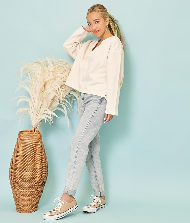 キーネック 裏毛 スウェット クロップド トレーナー 853-5820