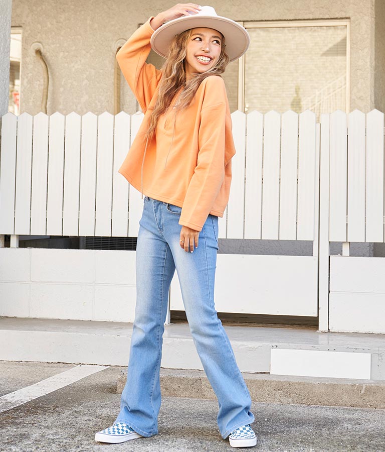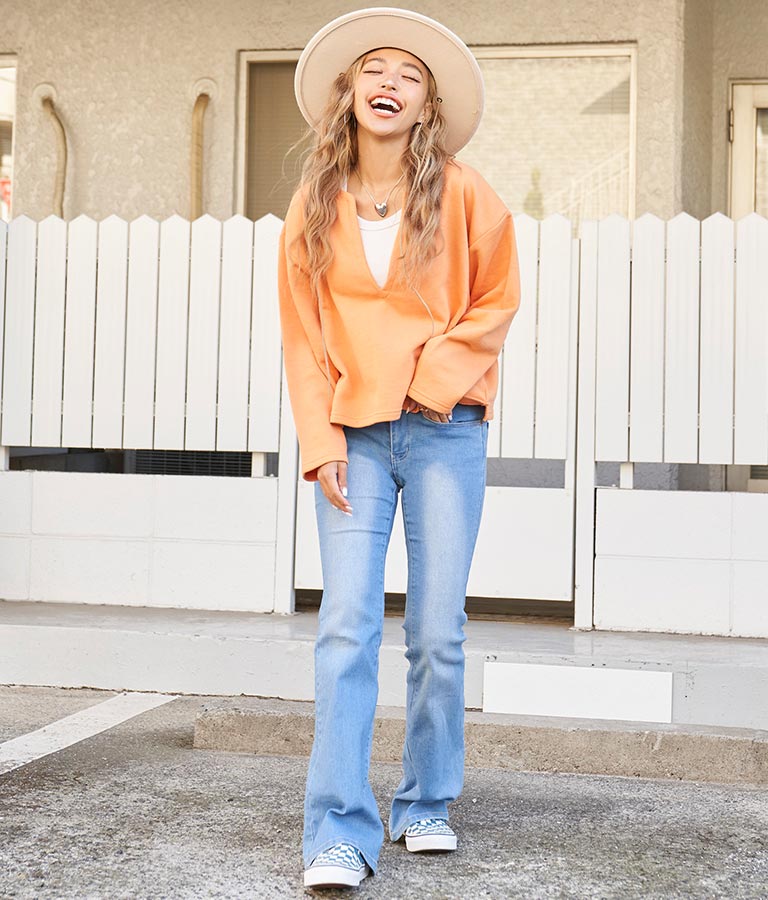 ゆったりシルエットがラフな雰囲気で、定番のデニムからスカートまで幅広く合わせていただけます。