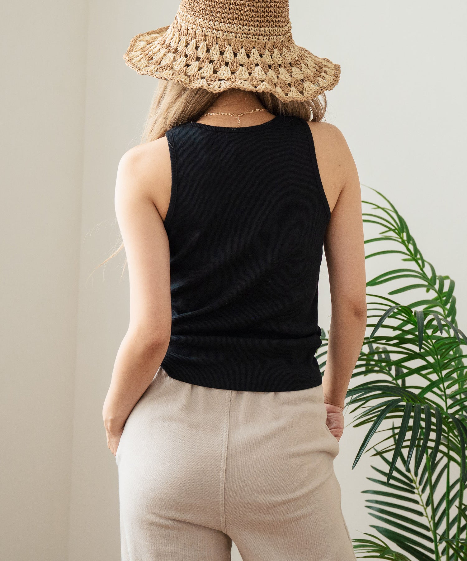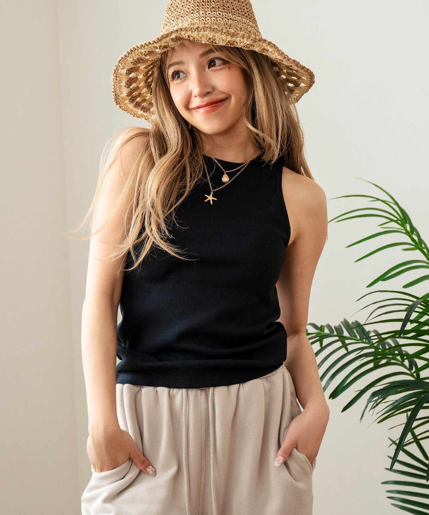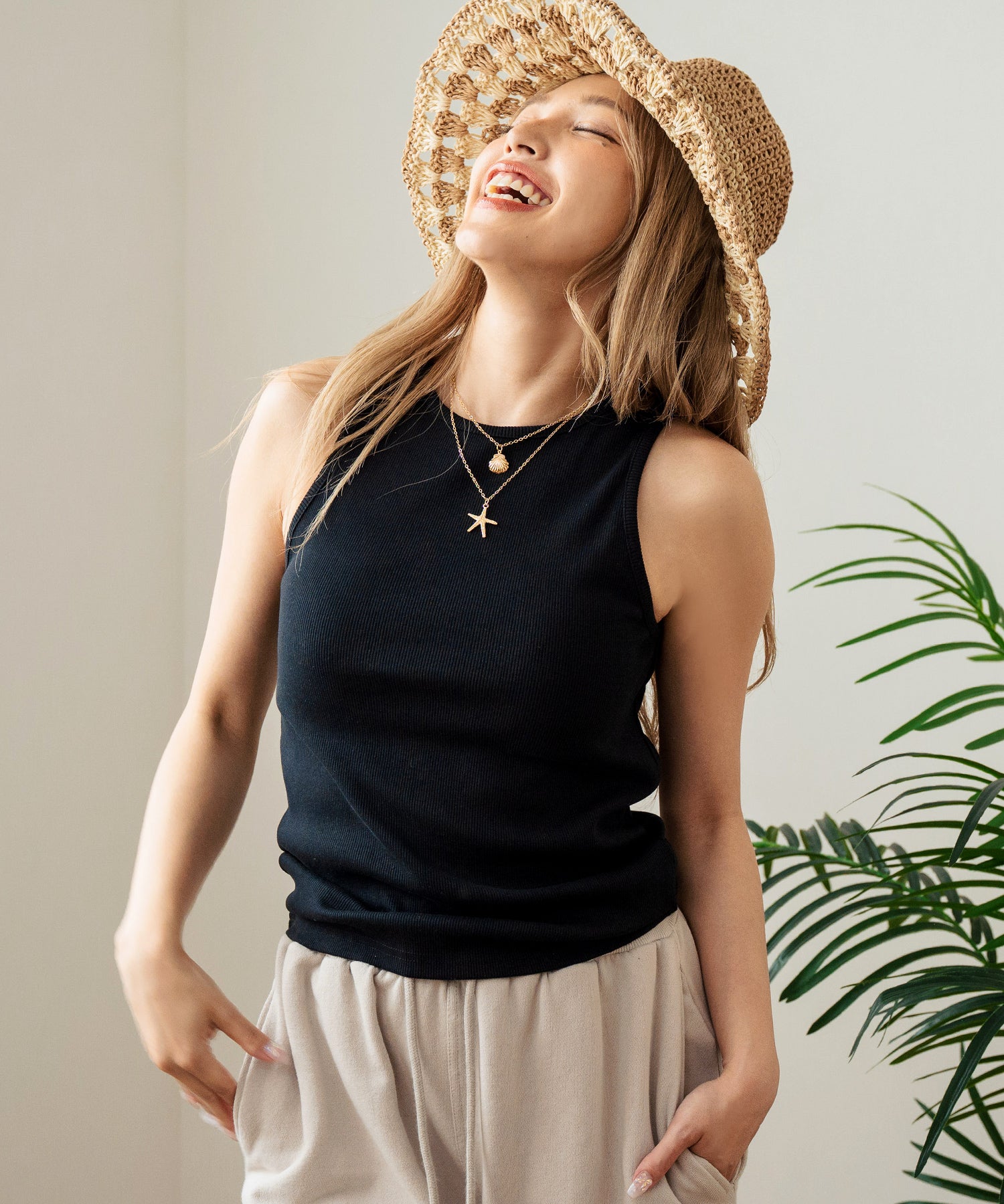シンプルだけど洗練された印象を叶えるリブタンクトップ。