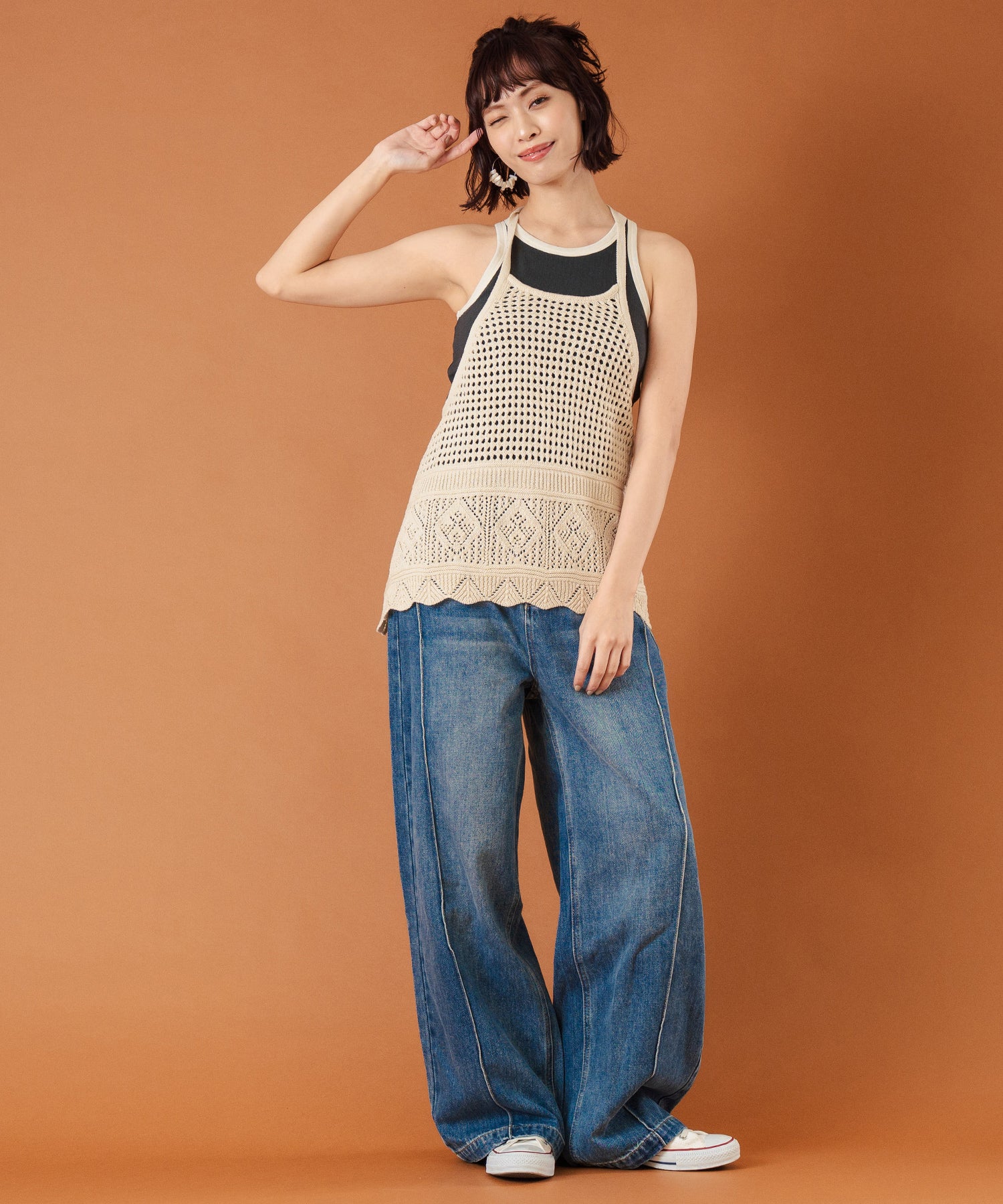 裾スカラップ 透かし編み ホルター キャミソール 853-5978