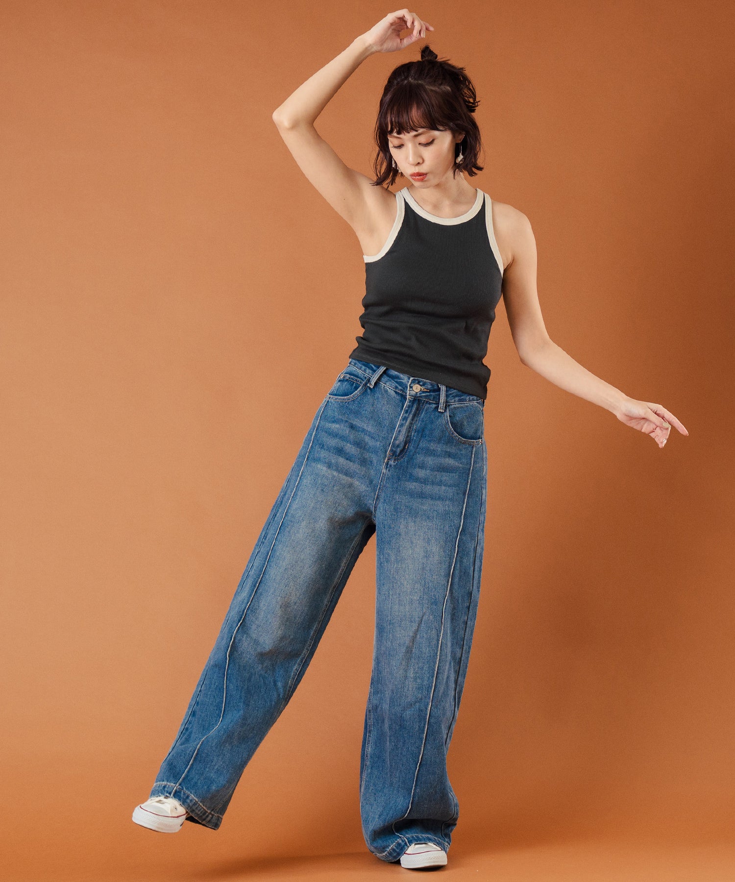 一枚で美シルエット。大人の余裕を感じさせるバイカラータンク。