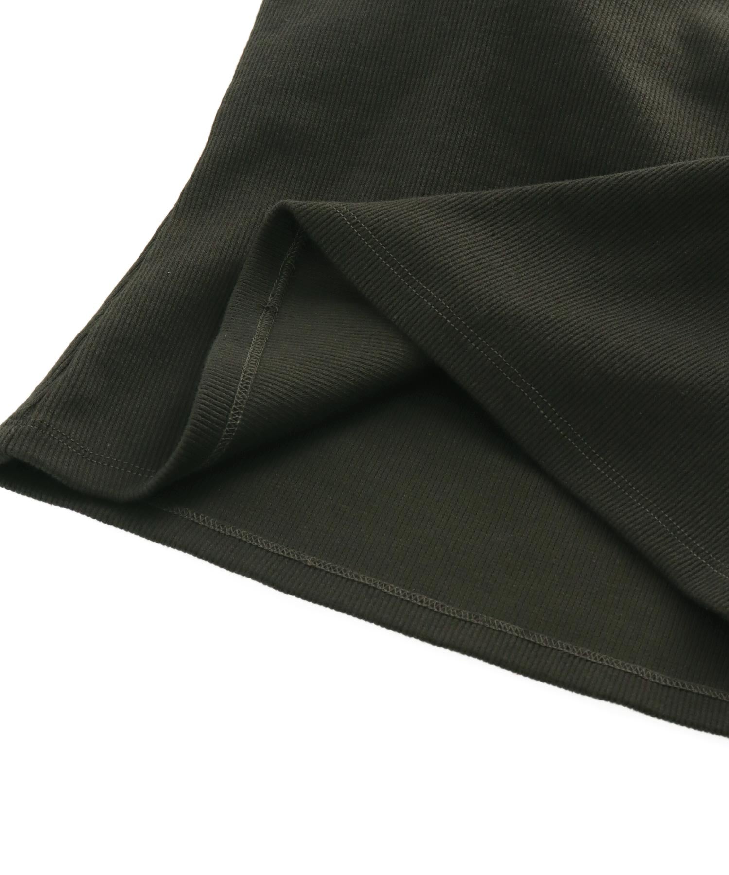 程よくフィットするリブ素材がボディラインを美しく見せつつ、動きやすさも抜群。